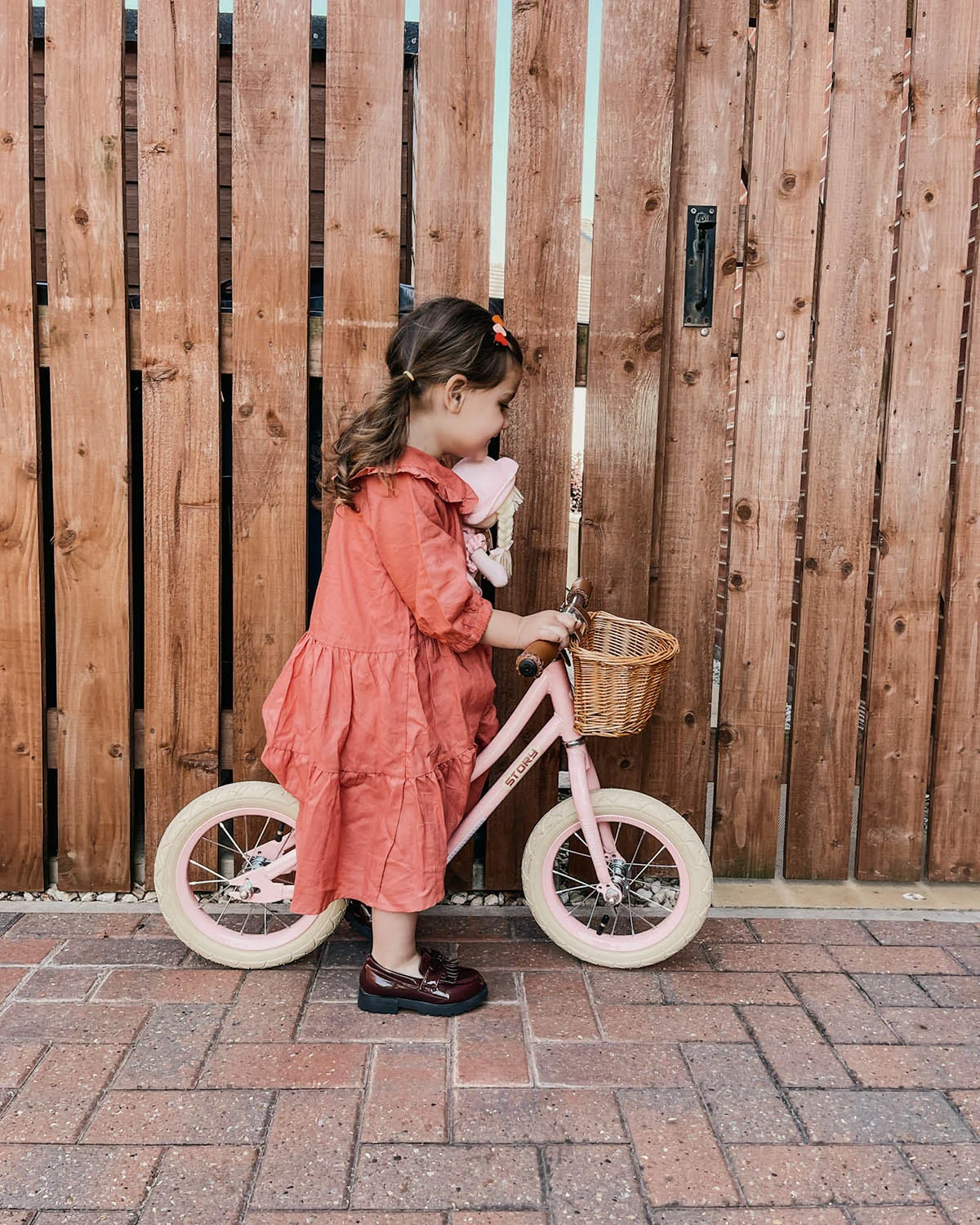 Kom tilbage i tiden med nutidens mest moderne løbecykel. Med et lækkert lædersæde og et par læder håndtag, samt nogle bløde gummihjul får dit barn den bedst mulige oplevelse og komfort. Kurvens størrelse er 20 X 14 X 12,5 cm i flet og har masser af plads til legetøj eller en madpakke.