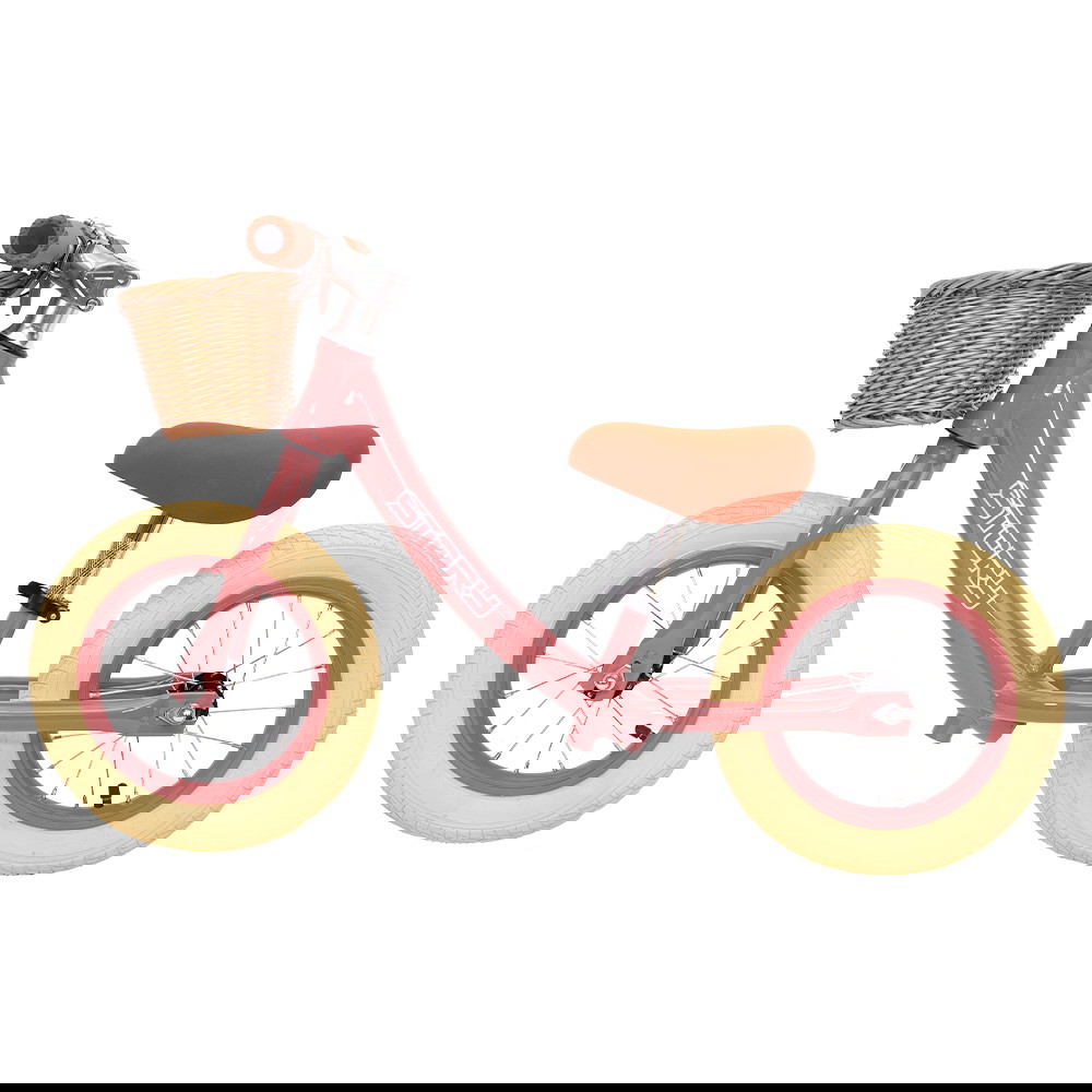 Hjulene er gummihjul med luft for ekstra komfort, som egner sig til både almindelig vej og ujævnt terræn. Balancecyklen kommer med en cykelkurv til opbevaring af alle de gode ting og sager man kan støde på, når man er på tur.