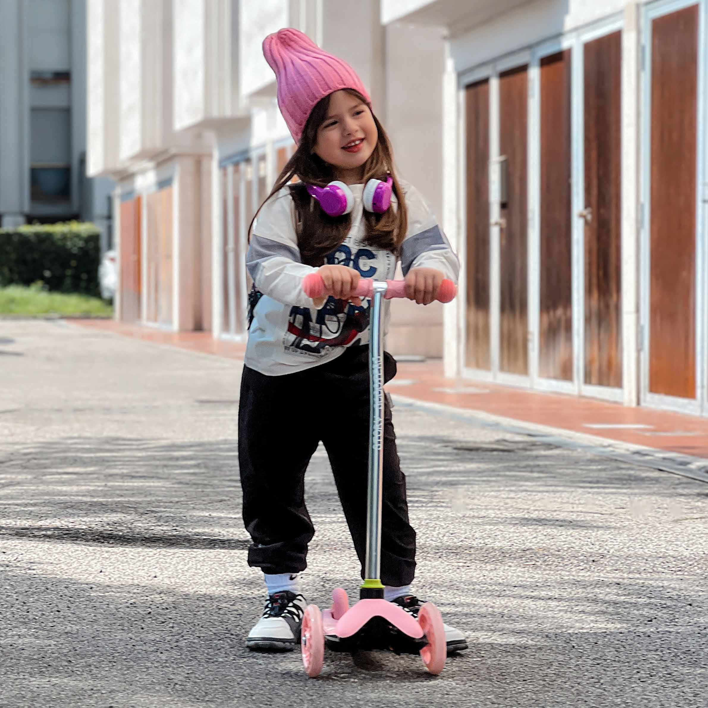 De fleste transportløbehjul og børneløbehjul har justerbar styrhøjde.