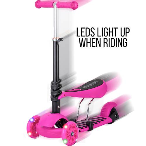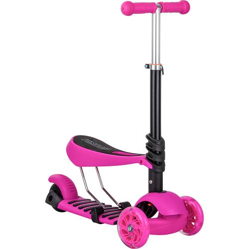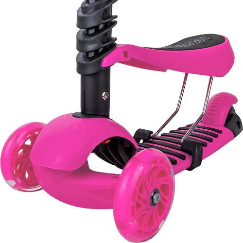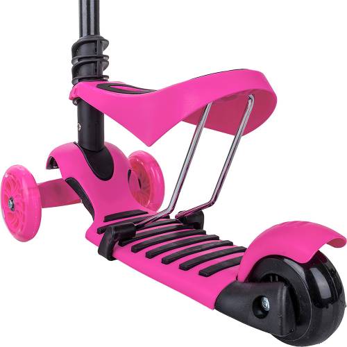 De forreste hjul er store og sikrer en god stabilitet så dit barn kan køre sikkert frem og tilbage på løbehjulet. Løbehjulet et lavet med en holdbar og stabil sædefunktion så dit barn har balancen og kommer sikkert frem og tilbage. Sædet kan afmonteres og bruges som normalt løbehjul. Løbehjulet er et perfekt nybegynder løbehjul som sikrer mange sjove timer.