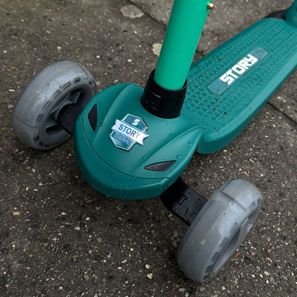 Vores intelligente Story Mini Friends 3IN1 Deluxe forener vores koncept med skråstyring, utroligt let ramme og højdejusterbar styrestamme. Som et resultat kan familier nu kombinere tilliden fra vores anerkendte originale trehjulet med muligheden for at tilpasse styrestammen for at passe til dit barns vækst. For at forstærke indtrykket er vores Story Mini Friends 3IN1 Deluxe også udstyret med selvlysende LED-hjul, hvilket eliminerer behovet for batterier. Disse geniale hjul lyser op ved hjælp af induktionsteknologi, hvorved dit barns skubben fremdrives til at energize hjulene med lys. En endeløs rejse af lysfyldt udforskning venter. Med vores opfindsomme bremsemekanisme, der reagerer på den letteste berøring, en nylonplade for øget styrke, termoplastisk gummi greb, der giver et blødt, men robust greb, og polyurethan hjul for uendelige eventyr - Story Mini Friends 3IN1 Deluxe omfatter det hele. Den eneste løbehjul dit barn vil behøve, en der vil vare i årevis. Skabt til eventyr. Designet til at modstå tidens prøve.