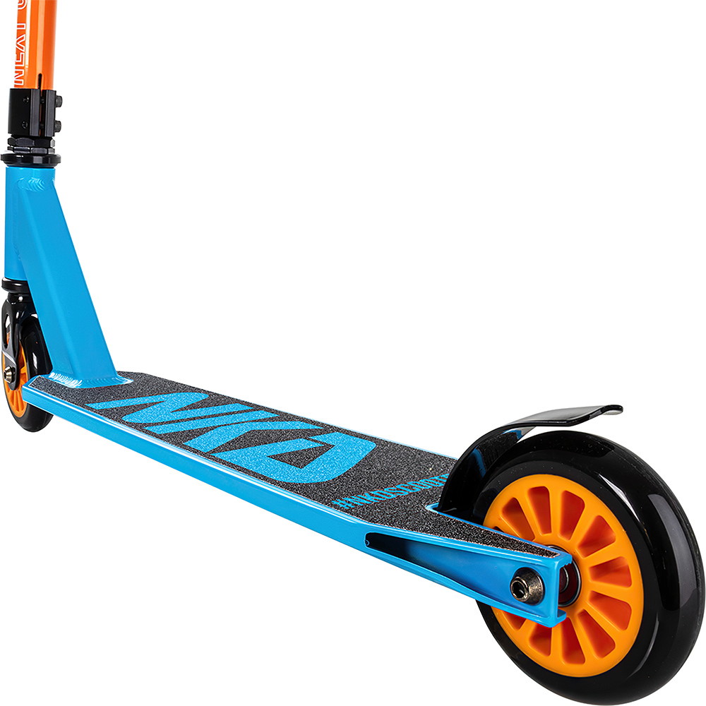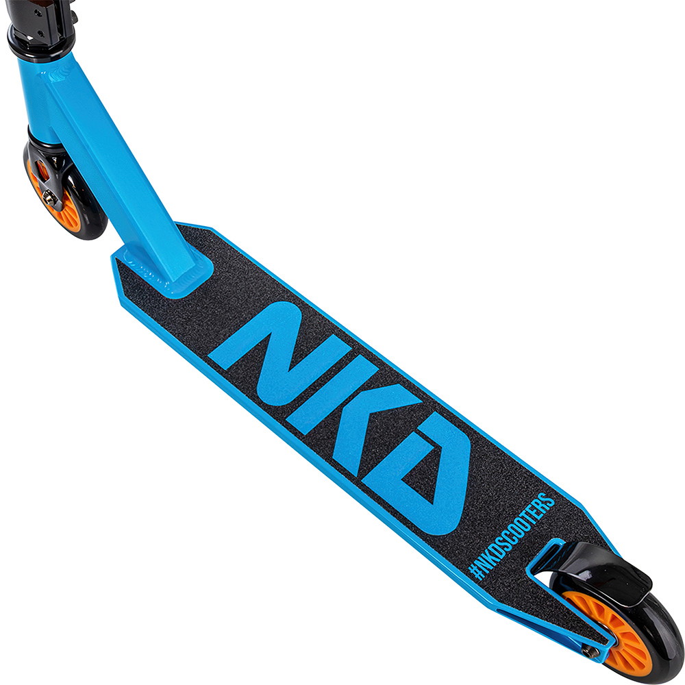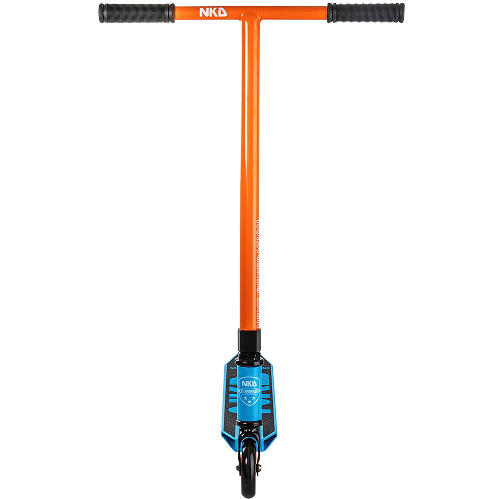 En klassisk tick T-bar af stærkt stål, giver et ondt look og holdes fast på forgaflen med en kraftig double clamp. Forgaflen er også konstrueret i stærkt stål med vægtbesparende udskæringer. NKD Next Generation er monteret med hurtige MDI-gummishjul, så du har kontrol og god komfort når du kører gennem byens gader. Baren er udstyret med super bløde håndtag, som giver et fast greb og en høj komfort, når du begynder dine første tricks og bar spins.