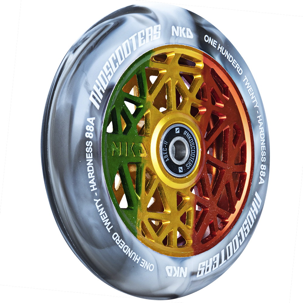 NKD Black widow løbehjuls hjul passer til løbehjul med 24mm nav og løbehjuls fork setups med 120mm hjul. Perfekt til Street løbehjul, men også skaterparken.