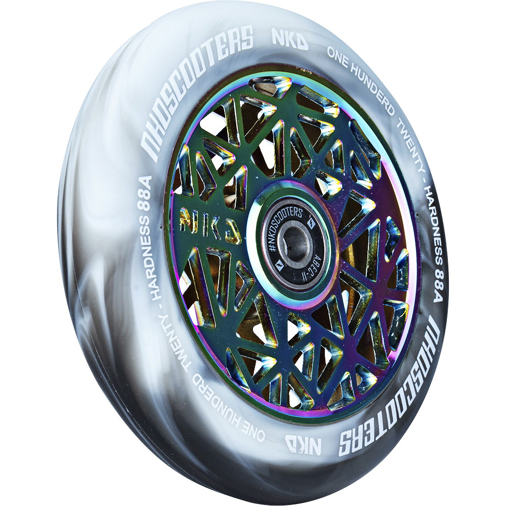 NKD Black widow løbehjuls hjul passer til løbehjul med 24mm nav og løbehjuls fork setups med 120mm hjul. Perfekt til Street løbehjul, men også skaterparken.