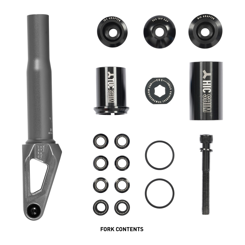 Triad Conspiracy TUC Fork er en alsidig og innovativ løbehjuls forgaffel designet til at understøtte flere kompressionssystemer. Uanset om du kører IHC, HIC eller SCS, sikrer denne gaffel kompatibilitet, hvilket gør den til et topvalg for enhver rytter. Dens slanke design og flush akselsystem giver et rent, minimalistisk look uden at ofre holdbarhed.