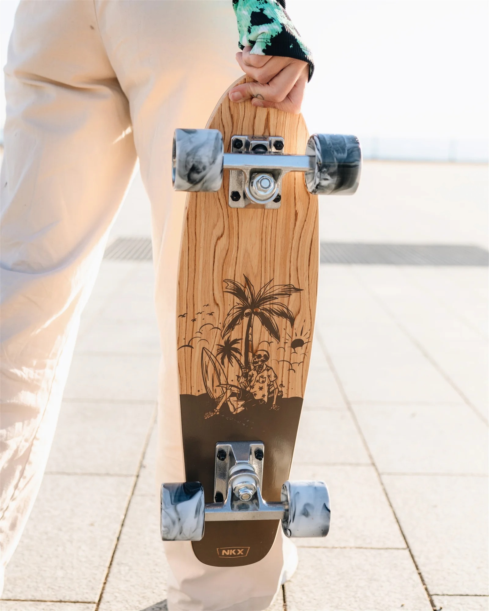 Med NKX Bones er den klassiske minicruiser-setup taget til næste niveau takket være dens kvalitetskomponenter. Boardet kommer med et ekstremt stærkt 7 lags canadisk ahorn medium concave deck med saltkorn som griptape, kvalitets ABEC-9 kugellejer og solide NKX trucks med god bredde. De store 78 A hjul er bløde cruiserhjul, der garanterer fart og komfort på alle typer asfalt.