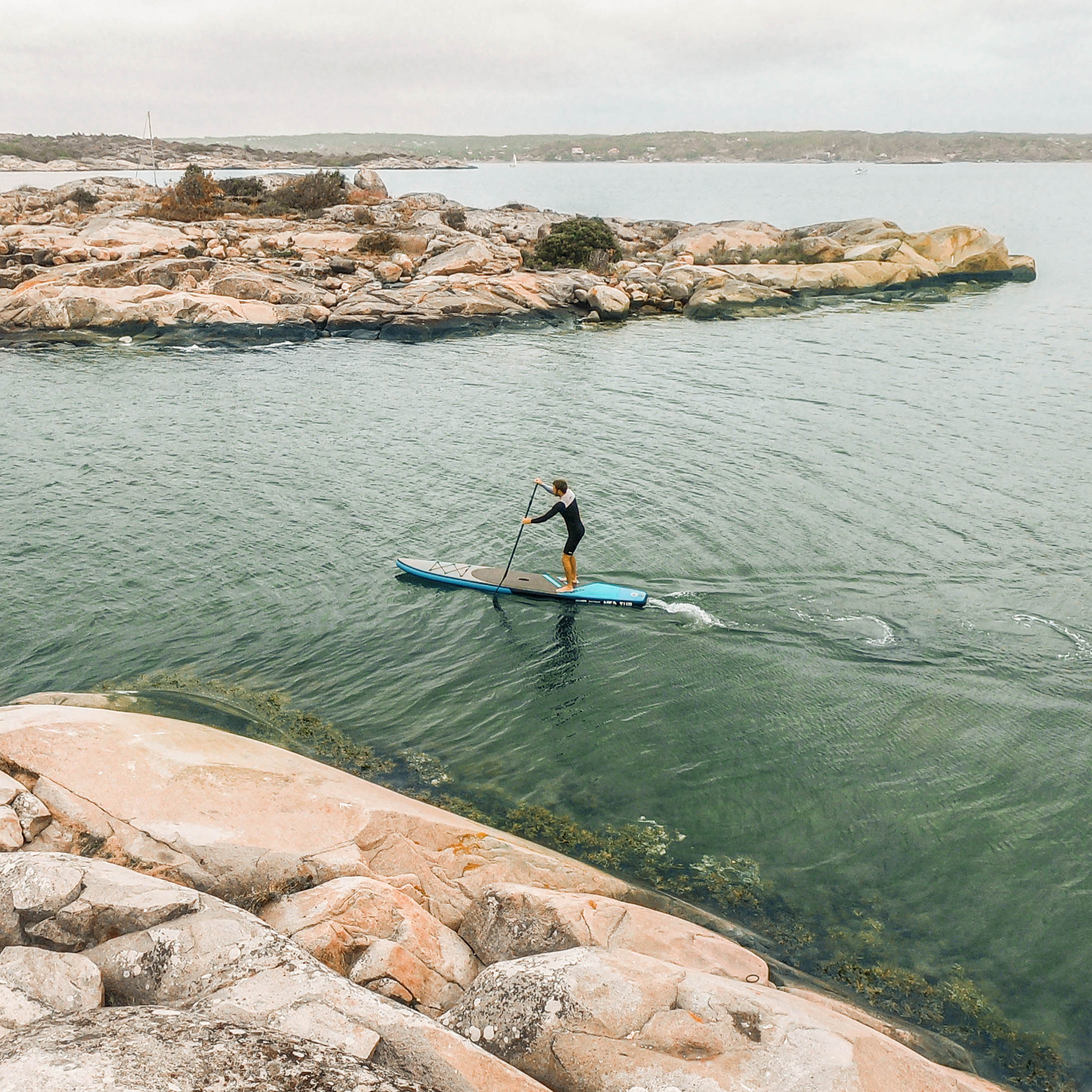 Fladt og vindstille vand uden krusninger, som man ofte oplever på søer eller i floder. At sejle på fladt vand med sin SUP er ideelt for dem, som gerne vil slappe af og hygge sig på deres SUP board.Bølger 0-50 cm: