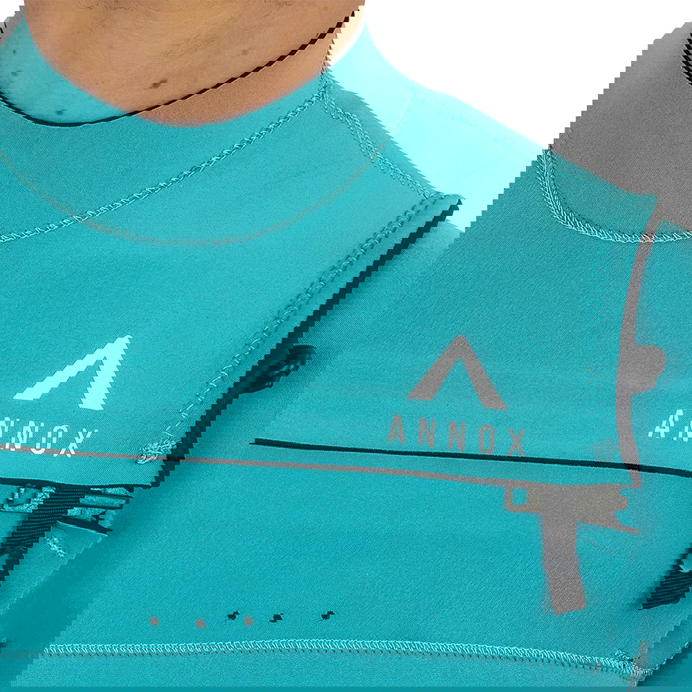 Som en front zip våddragt, er lynlåsen placeret ved brystkassen. Dette giver øget fleksibilitet, da dine bevægelser ikke påvirkes af en lynlås i ryggen. Samtidigt hjælper det også med at gøre Annox Radical endnu mere vandresistent, da lynlåsen er helt øverst ved din brystkasse, og som nævnt, ikke langs din ryg.