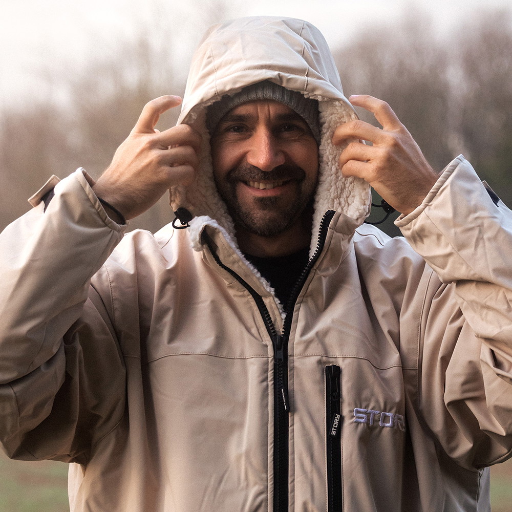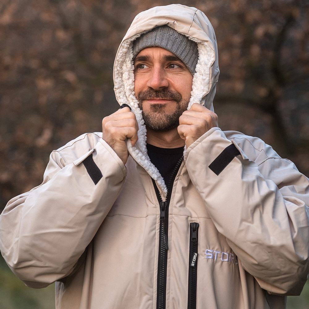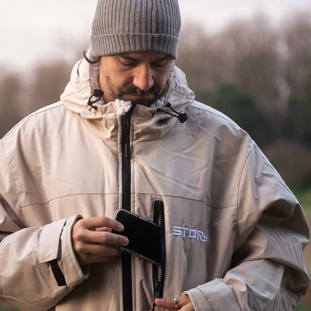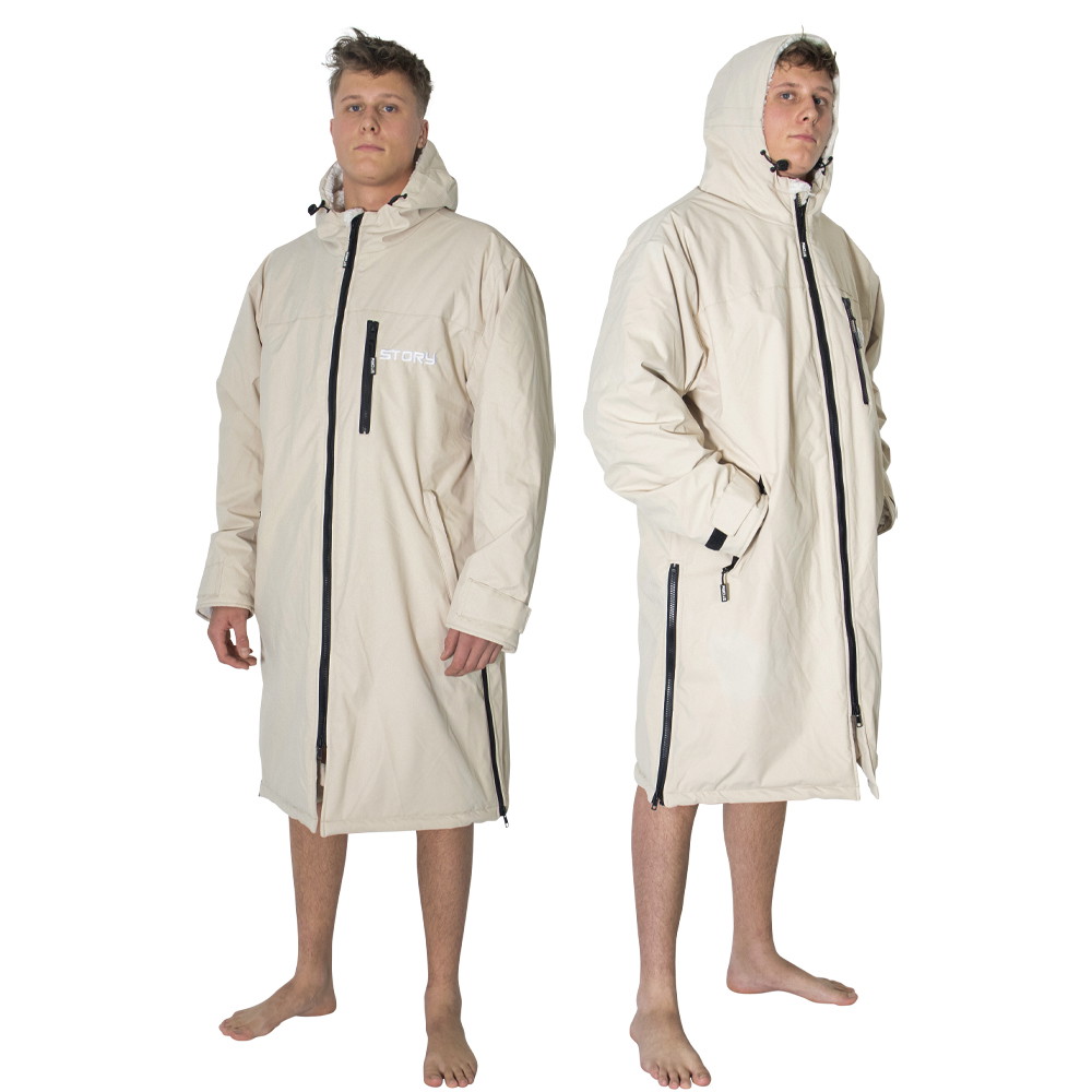 Bemærk at Story Change Robe er designet som en oversize jakke, da det oprindelige formål for jakken var til surfing. Dog er Story Change Robe den perfekte jakke til mange formål, så hvis du derfor ønsker en Story Change Robe til hverdagsbrug, så kan du overveje at gå en størrelse ned, for at få en "normal" pasform.