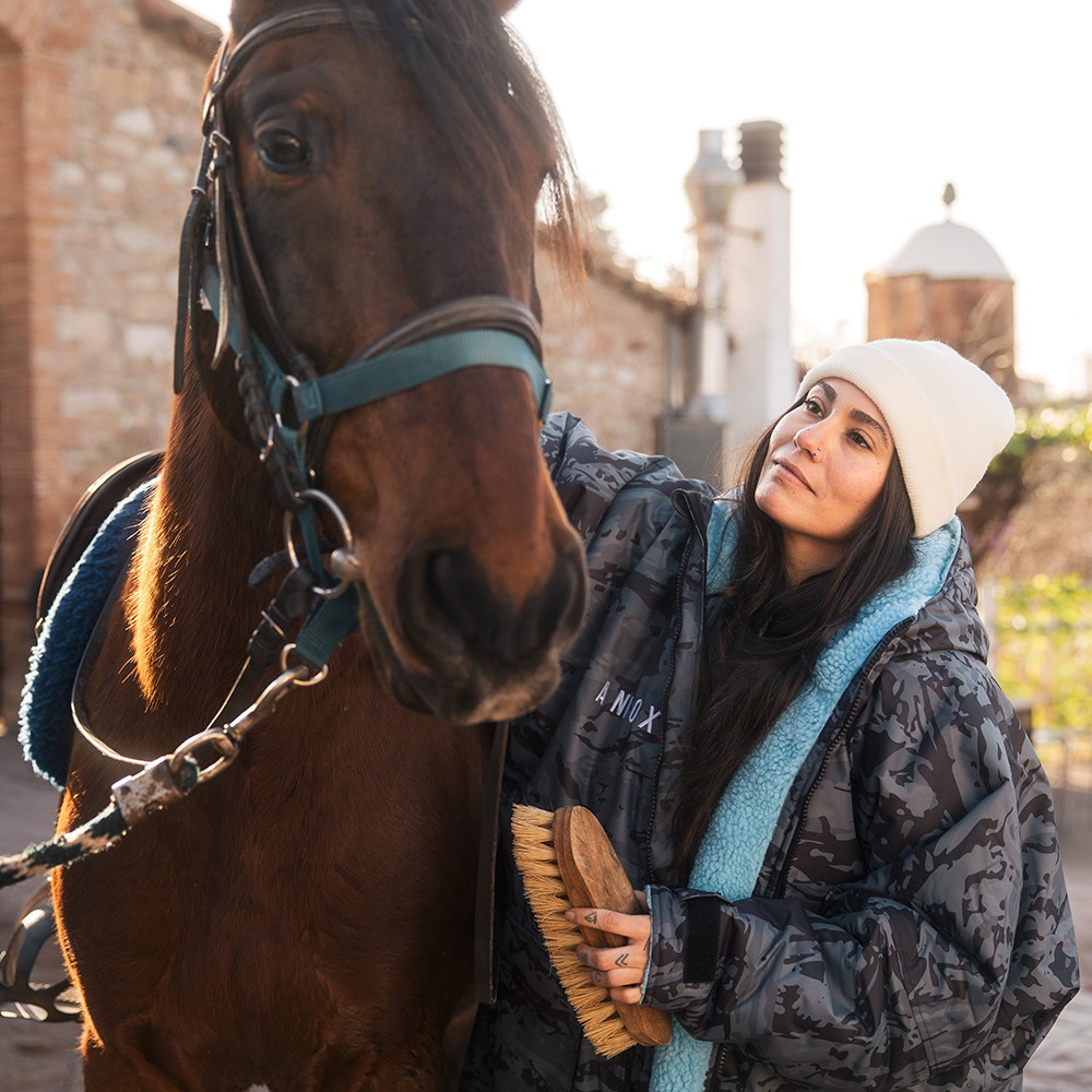 Du kan også tilpasse denne change robe ved håndleddene og herved holde bedre på varmen ved at benytte velcrolukningen for hvert ærme.