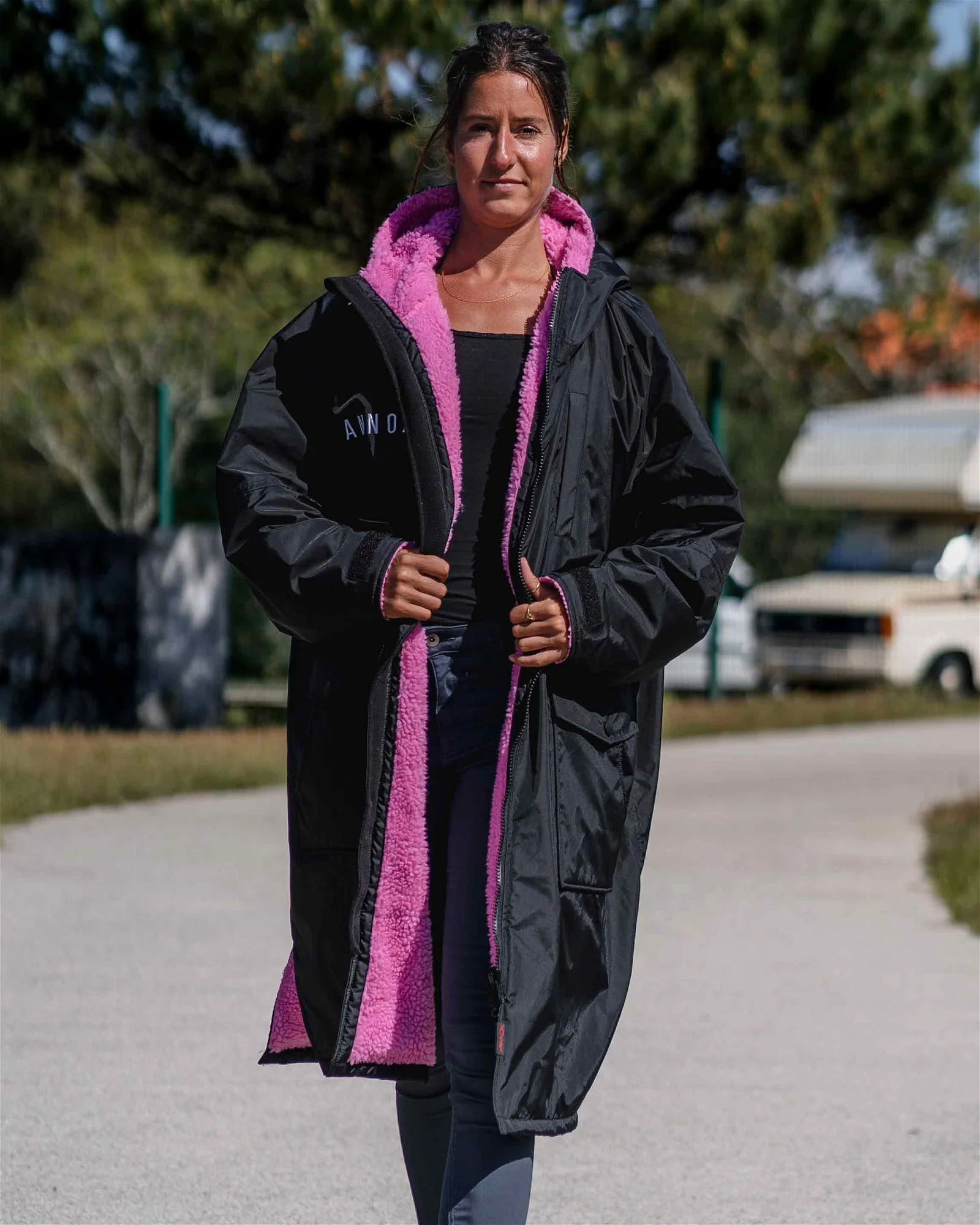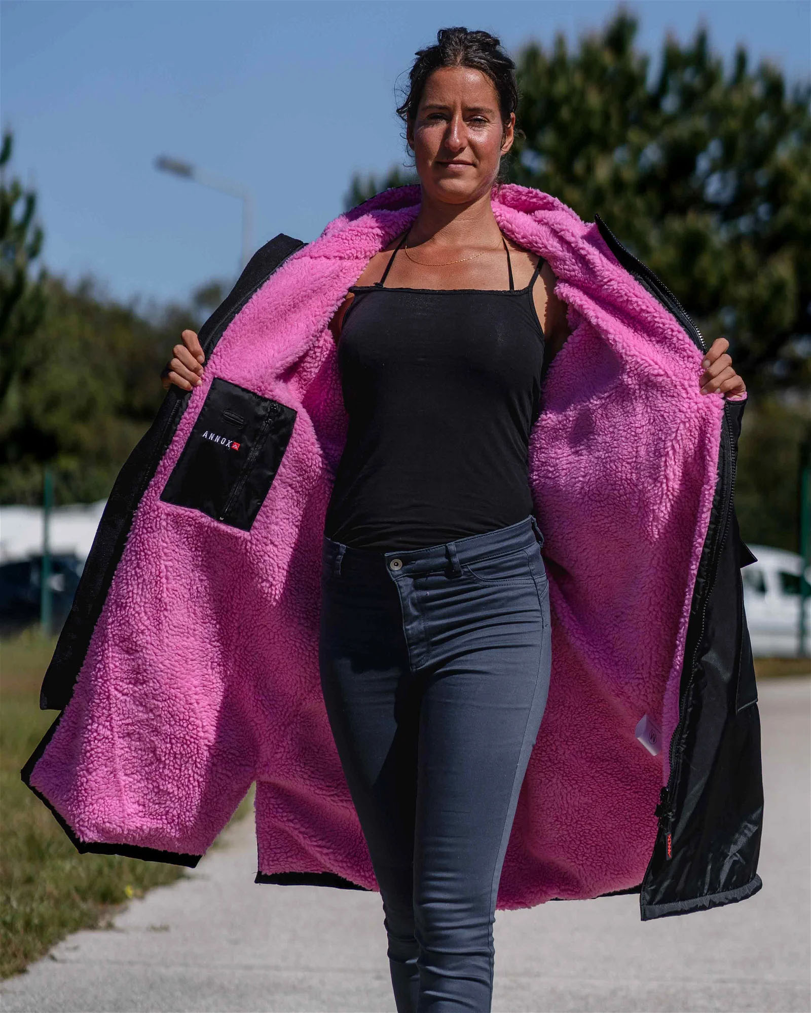 Nogle andre smarte features for denne Annox Change Robe er blandt andet den funktionelle 2-vejs lynlås, som gør det hurtigt og let at få den af og på.