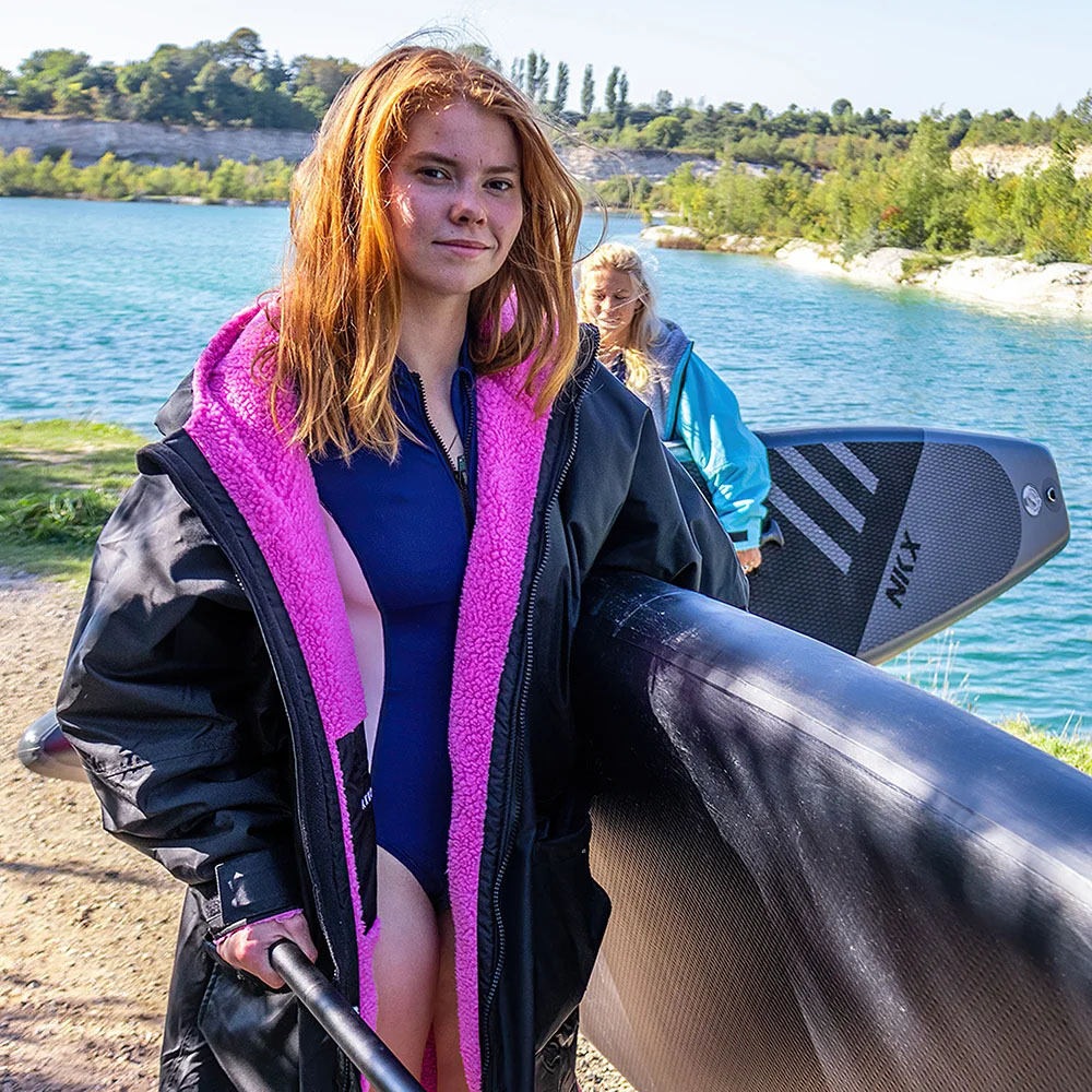 Du bør dog aldrig gå i vandet med en change robe på. Den er lavet til at tørre eller holde dig varm, mens du skifter tøj og/eller befinder dig på land.