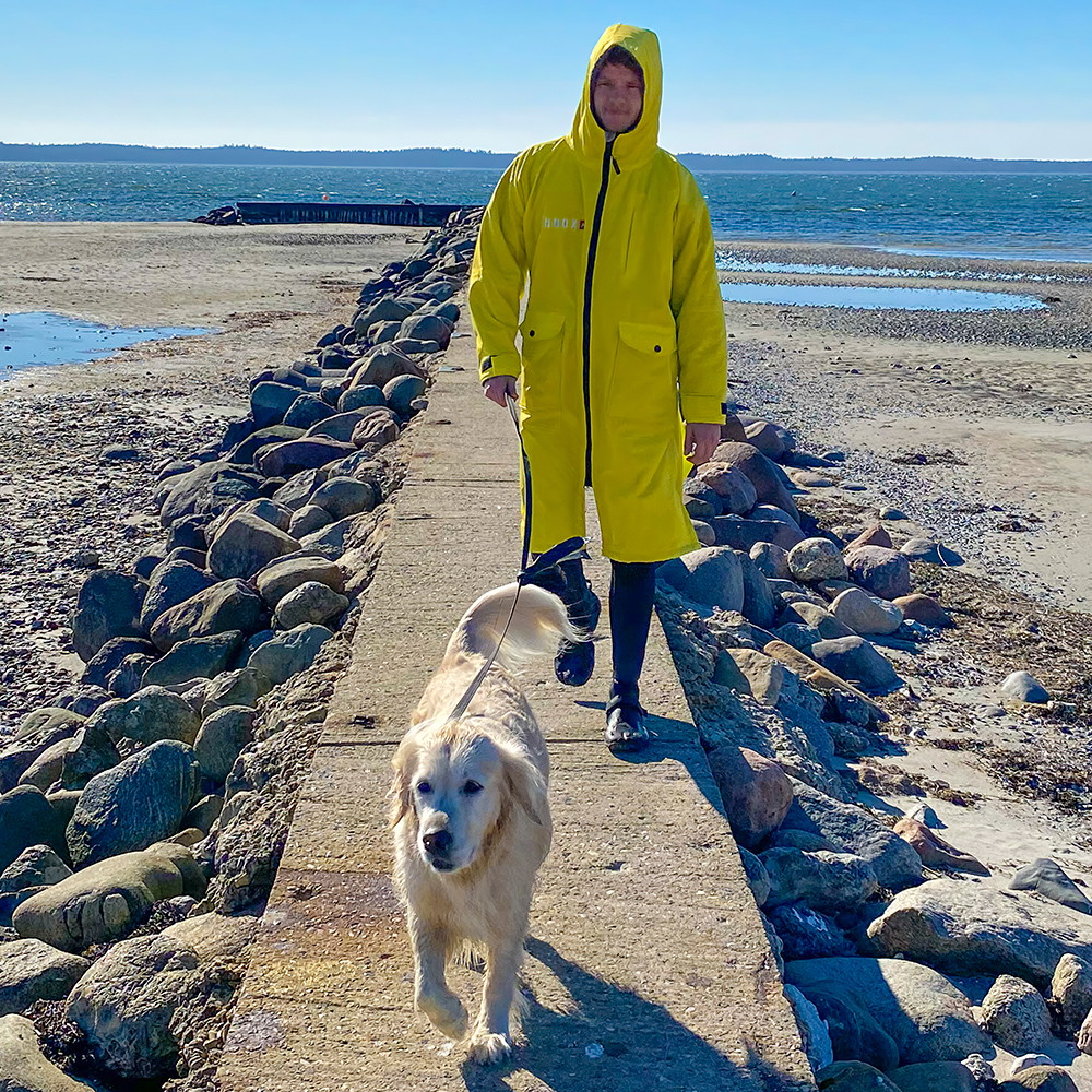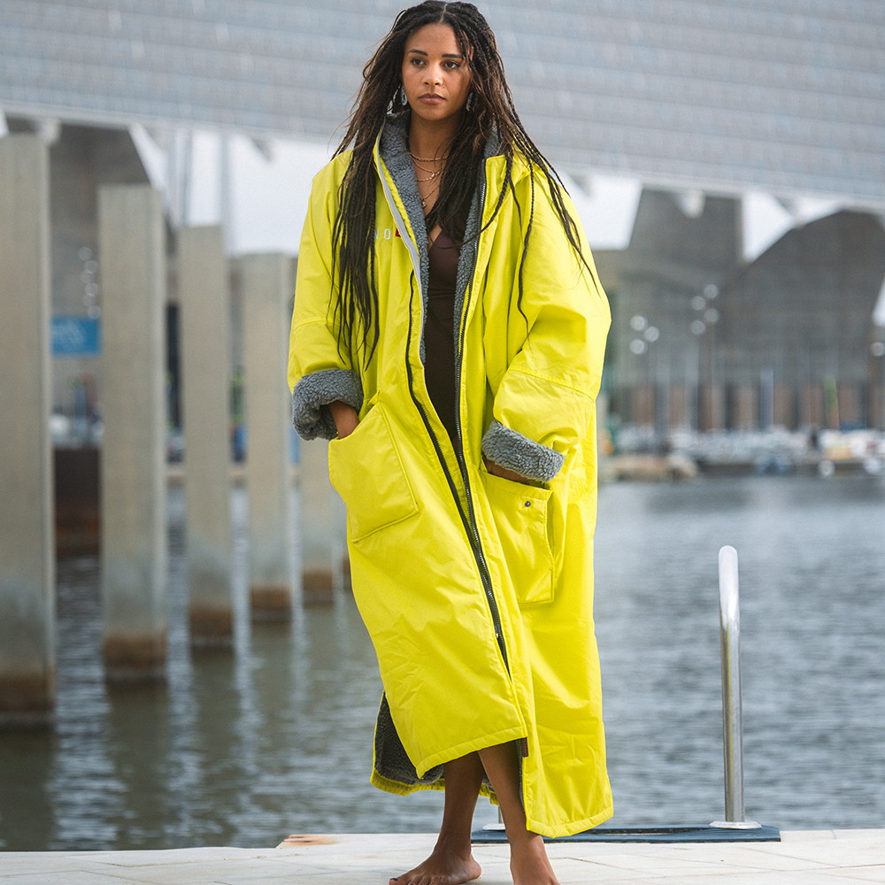Du bør dog aldrig gå i vandet med en change robe på. Den er lavet til at tørre eller holde dig varm, mens du skifter tøj og/eller befinder dig på land.