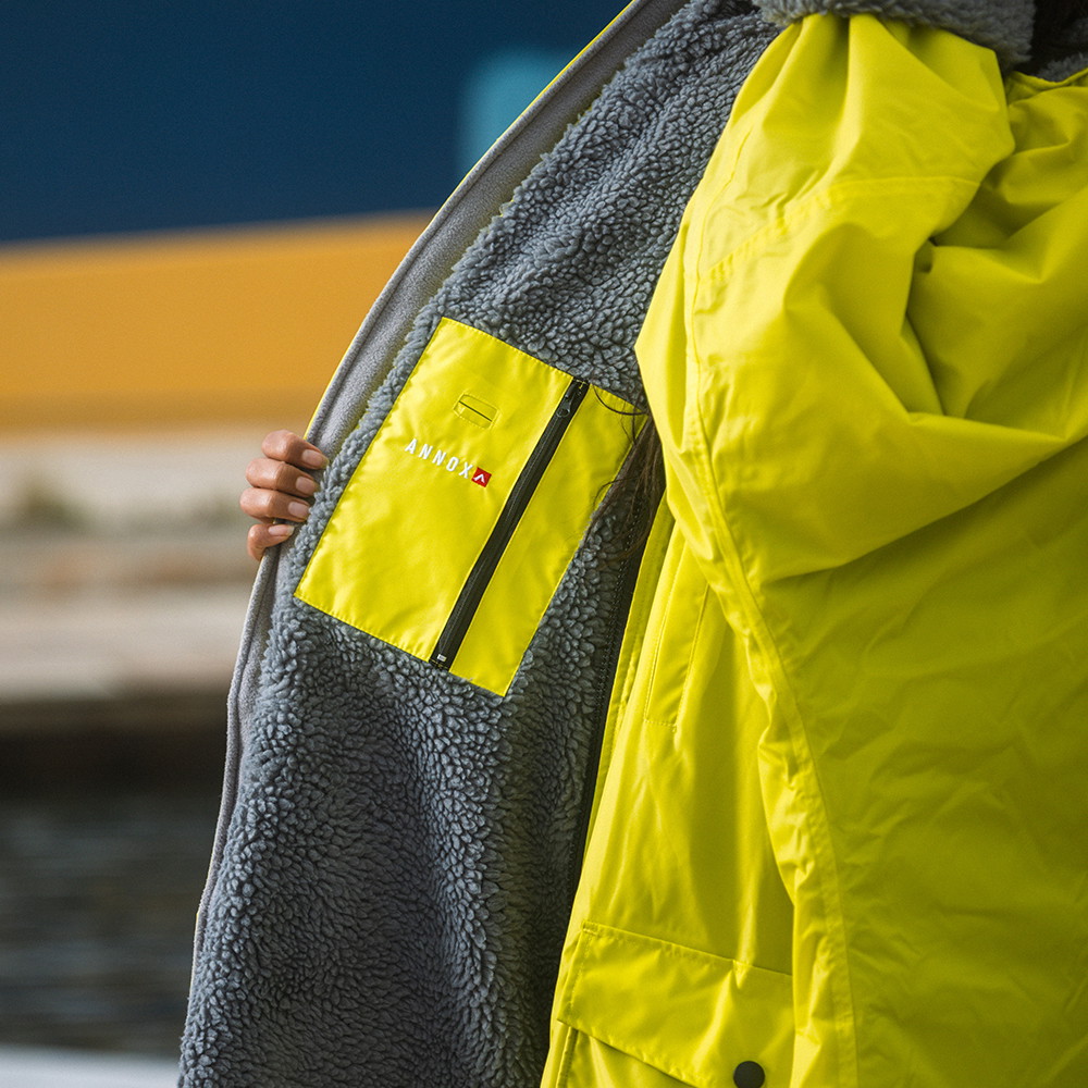 Nogle andre smarte features for denne Annox Change Robe er blandt andet den funktionelle 2-vejs lynlås, som gør det hurtigt og let at få den af og på.