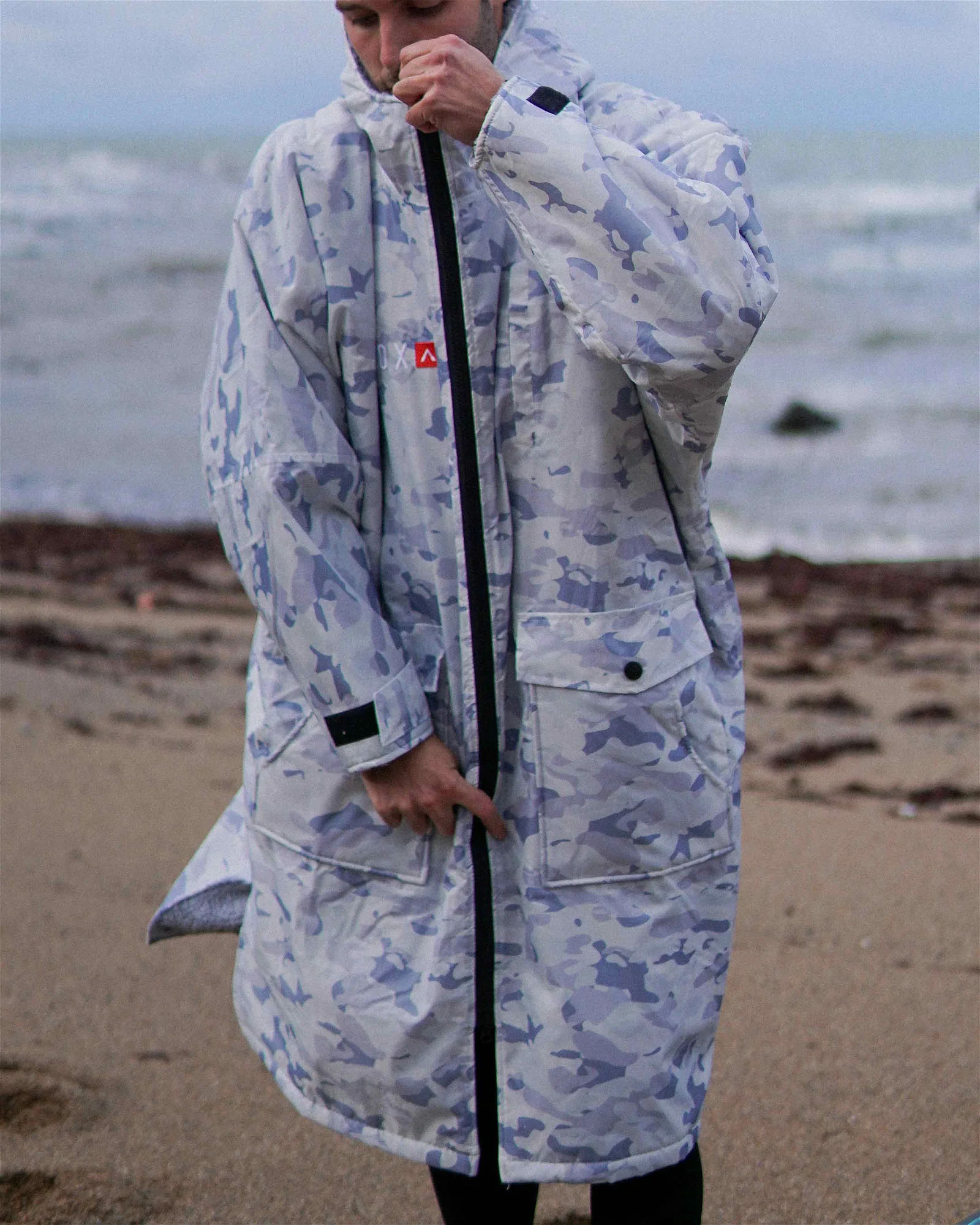 Du kan også tilpasse denne change robe ved håndleddene og herved holde bedre på varmen ved at benytte velcrolukningen for hvert ærme.