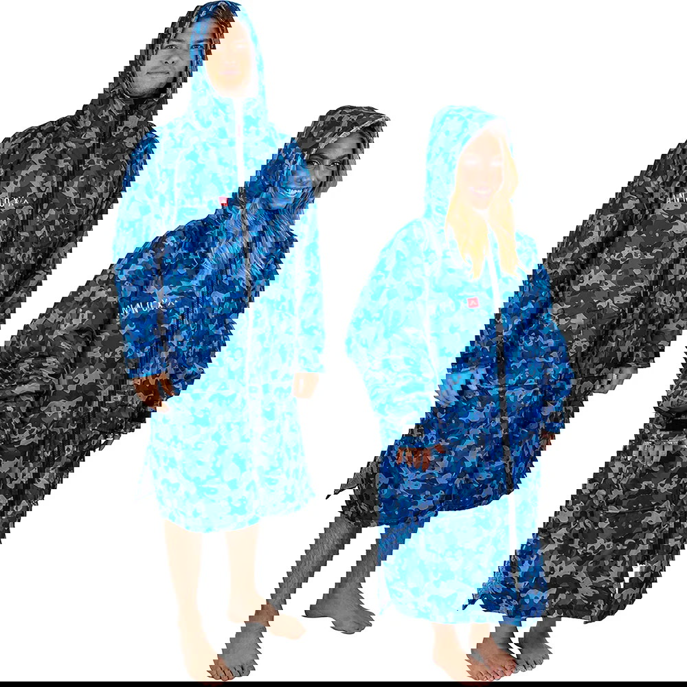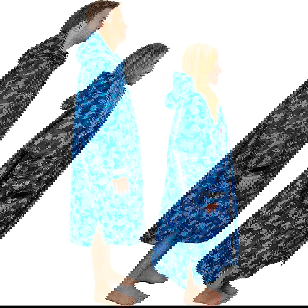 Du bør dog aldrig gå i vandet med en change robe på. Den er lavet til at tørre eller holde dig varm, mens du skifter tøj og/eller befinder dig på land.