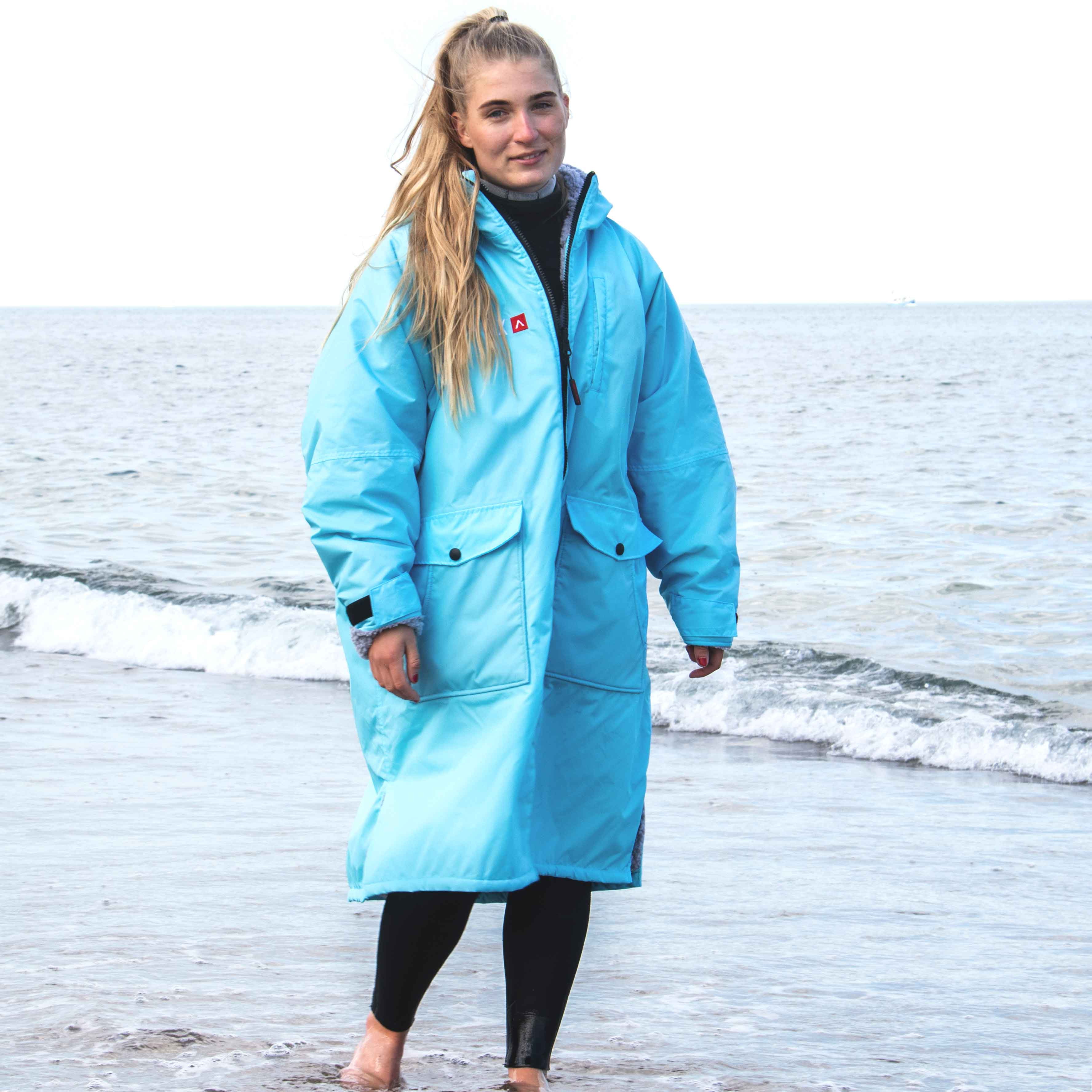 Du bør dog aldrig gå i vandet med en change robe på. Den er lavet til at tørre eller holde dig varm, mens du skifter tøj og/eller befinder dig på land.