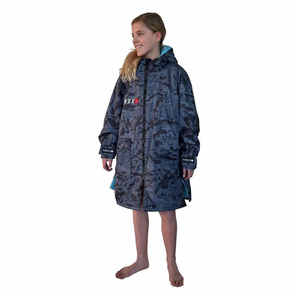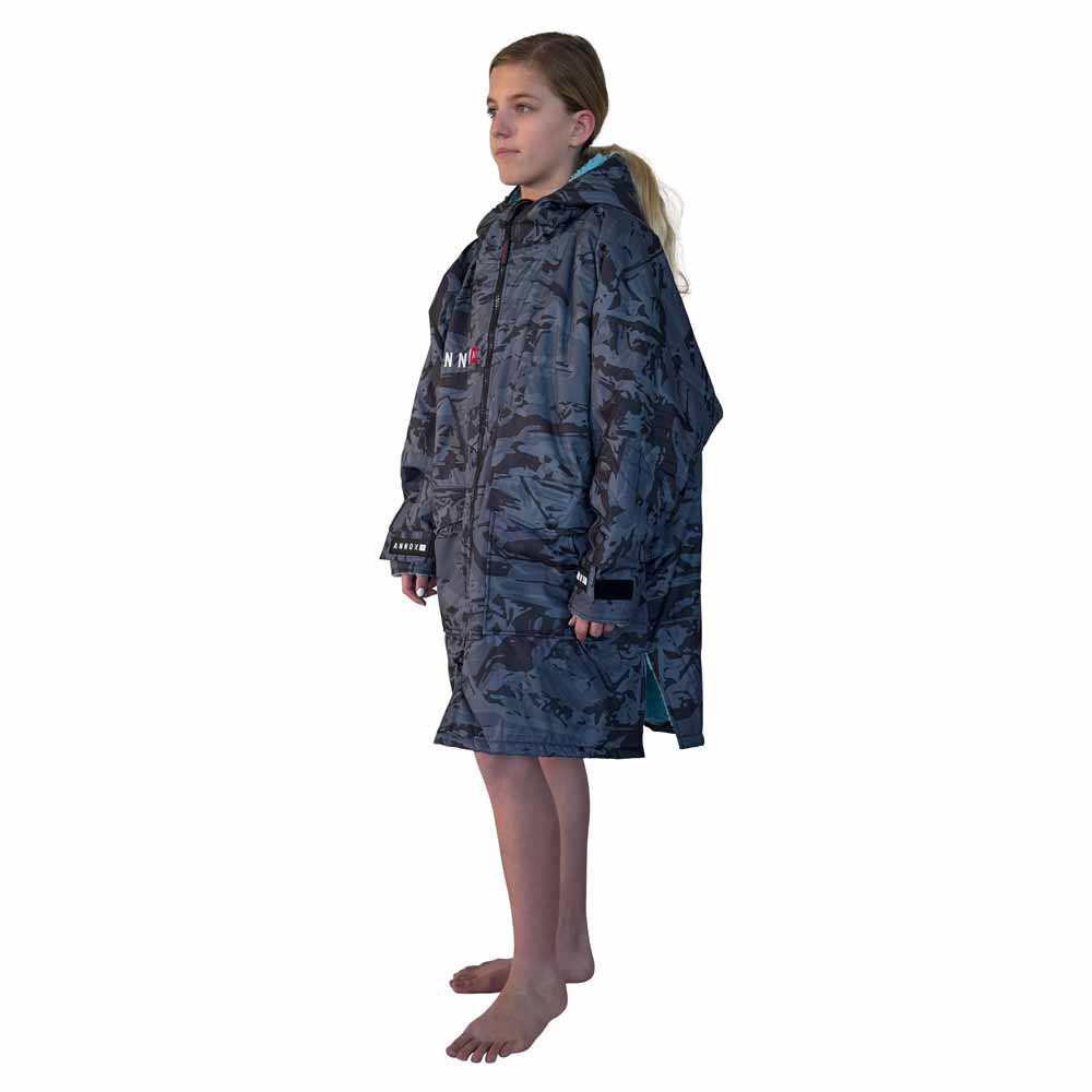 Som en change robe der både er vand- og vindtæt, med et ydre materiale af 100% genanvendt nylon, får dit barn en change robe til brug hele året rundt - selv om vinteren. Det indvendige materiale af syntetisk lammeuld, der består af en kombination af 51% akryl og 49% genanvendt polyester, giver en change robe der holder dit barn dejlig varm. Dette materiale gør det ligeledes muligt at anvende denne Annox Kids Change Robe op til flere gange uden at den vil føles kold eller våd.