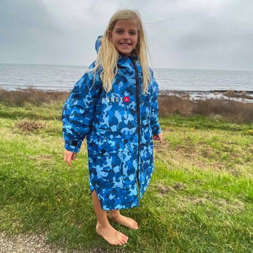 Denne Annox Kids Change Robe til børn er et langærmet skifteklæde af høj kvalitet. Det er super nemt at tage den med sig og den kan bruges som et mobilt omklædningsrum, der også holder godt på varmen og tørrer dit barn hurtigt. Denne Annox Kids Change Robe er designet til at kunne klare slitage fra en aktiv livsstil, hvor forskellige vejrforhold indgår. Dette gør den derfor velegnet for børn som elsker vandsportsgrene og sjov på stranden i alt slags vejr.