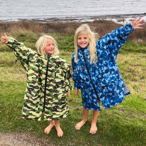 Dit barn bør dog aldrig have en change robe på i vandet. Det er et klæde der kan holde dem varme og tørre, mens de skifter tøj eller er på land.