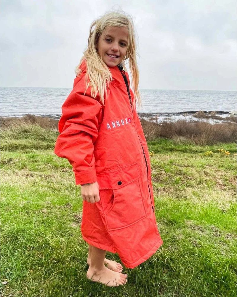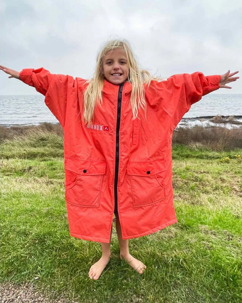 Denne Annox Kids Change Robe til børn er et langærmet skifteklæde af høj kvalitet. Det er super nemt at tage den med sig og den kan bruges som et mobilt omklædningsrum, der også holder godt på varmen og tørrer dit barn hurtigt. Denne Annox Kids Change Robe er designet til at kunne klare slitage fra en aktiv livsstil, hvor forskellige vejrforhold indgår. Dette gør den derfor velegnet for børn som elsker vandsportsgrene og sjov på stranden i alt slags vejr.