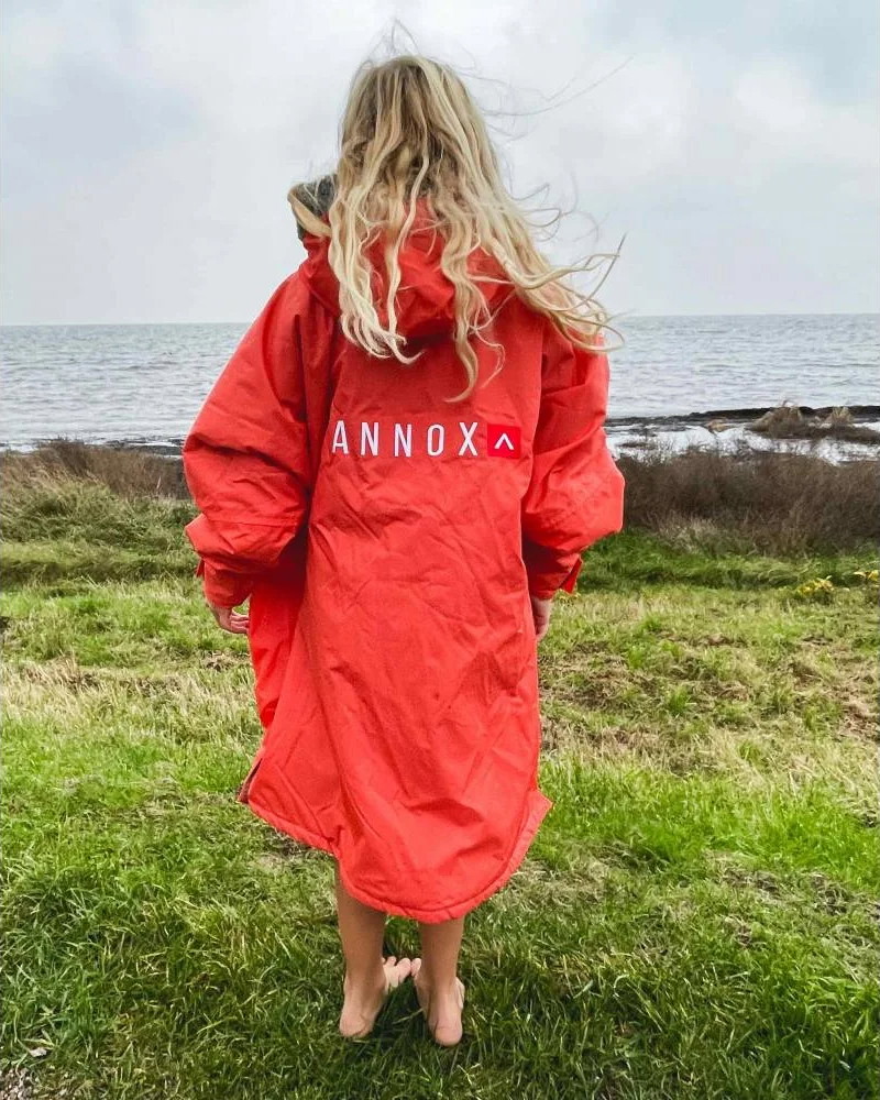 Som en change robe der både er vand- og vindtæt, med et ydre materiale af 100% genanvendt nylon, får dit barn en change robe til brug hele året rundt - selv om vinteren. Det indvendige materiale af syntetisk lammeuld, der består af en kombination af 51% akryl og 49% genanvendt polyester, giver en change robe der holder dit barn dejlig varm. Dette materiale gør det ligeledes muligt at anvende denne Annox Kids Change Robe op til flere gange uden at den vil føles kold eller våd.