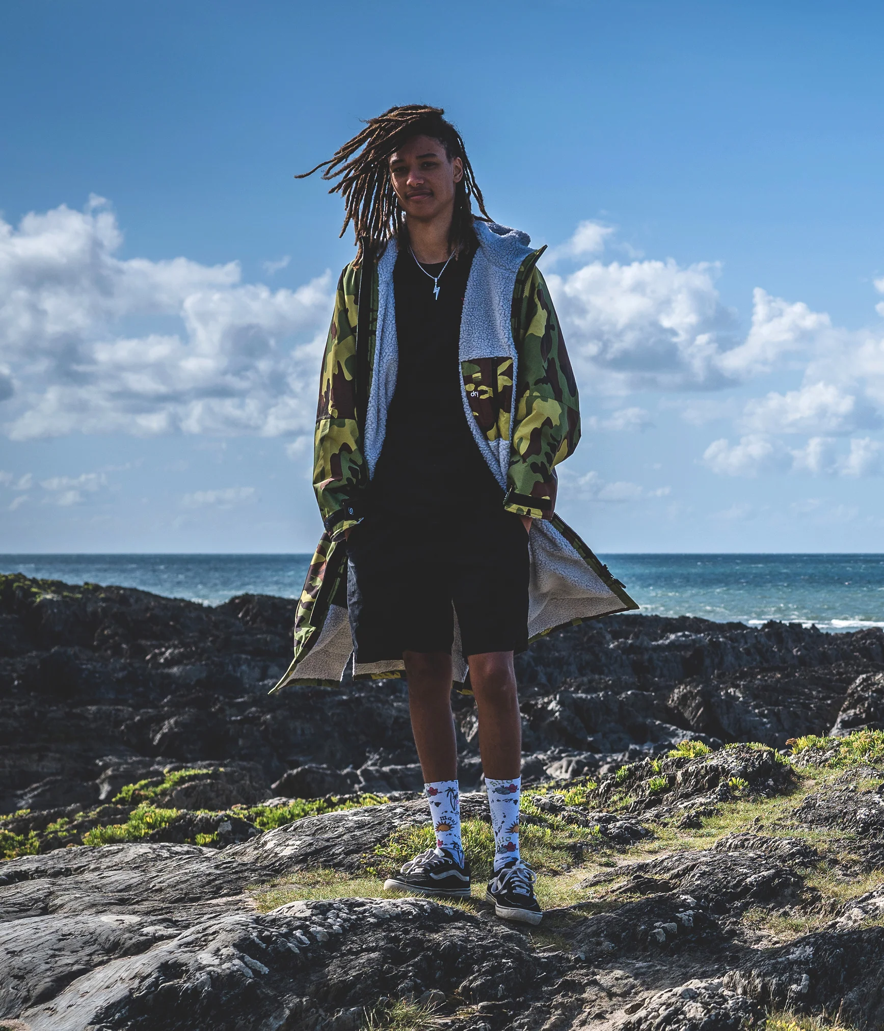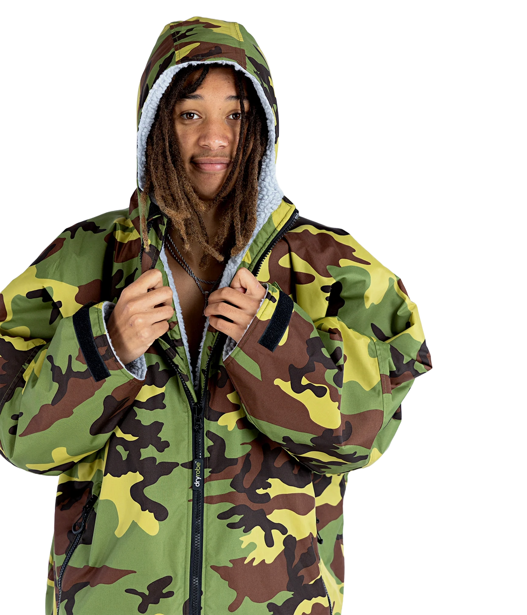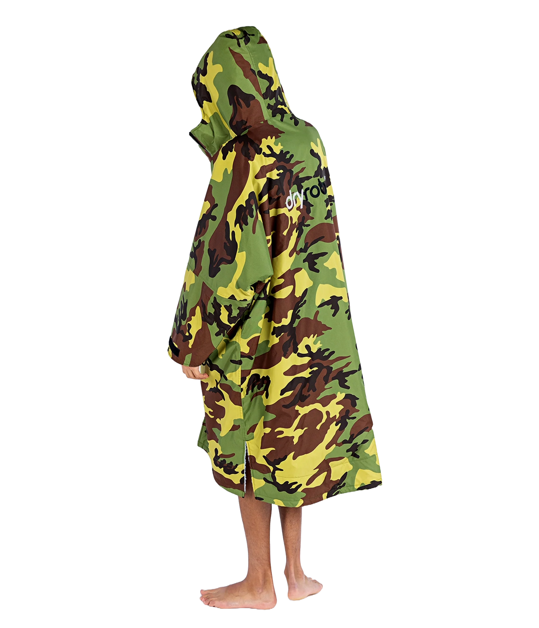 Dryrobe har et vandtæt og vindtæt yderstof og en beklædning der tørrer dig og holder dig varm. Designet giver masser af plads til at trække dine arme ind gennem ærmerne og skifte inde i den. Du kan nemt få en våddragt, svømme eller tri-kit, af eller på, nemt, mens du forbliver varm, tør og fuldt beskyttet mod elementerne.