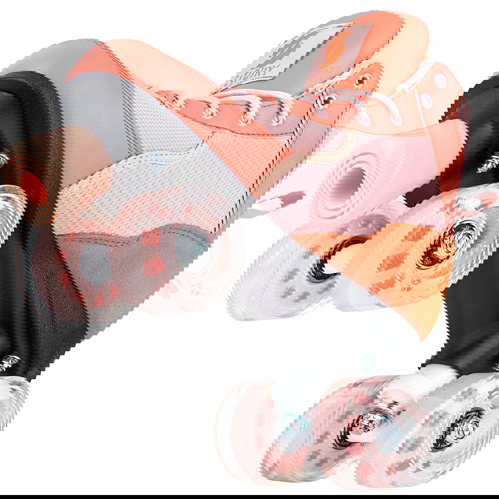 Disse quad rulleskøjter har en hjulbredde på 32 mm, hvilket giver en stabil og afbalanceret tur. Hjulenes hårdhed på 82A sikrer en glat og kontrolleret skøjteoplevelse på forskellige overflader, uanset om du skøjter indendørs eller udendørs. Hjuldiameteren varierer afhængigt af størrelsen, hvor størrelserne 33-34 har en diameter på 53 mm, størrelserne 35-37 har en diameter på 54 mm, og størrelserne 38-40 har en diameter på 57 mm. Hjulene er lavet af høj kvalitet PU-materiale, der er kendt for sin holdbarhed og pålidelige greb, hvilket sikrer optimal ydeevne under dine skøjtesessioner. Udstyret med ABEC-7 lejer tilbyder disse skøjter en glidende rulning, der forbedrer din hastighed og samlede skøjteoplevelse.
