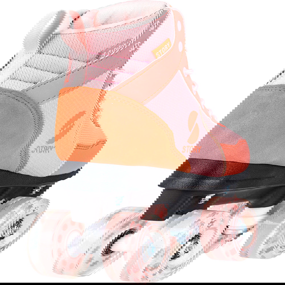 Story Cooper Side by Side Rulleskøjterne er konstrueret med et solidt plastblademateriale, der er designet til at modstå kravene fra derby og freeride-aktiviteter. Bløde sko i soft shell-stil tilbyder en behagelig pasform, der gør det muligt at skate i længere perioder uden ubehag eller træthed. Kombinationen af støtte og fleksibilitet i skoens design sikrer en responsiv og behagelig skøjteoplevelse.