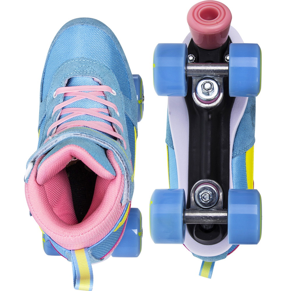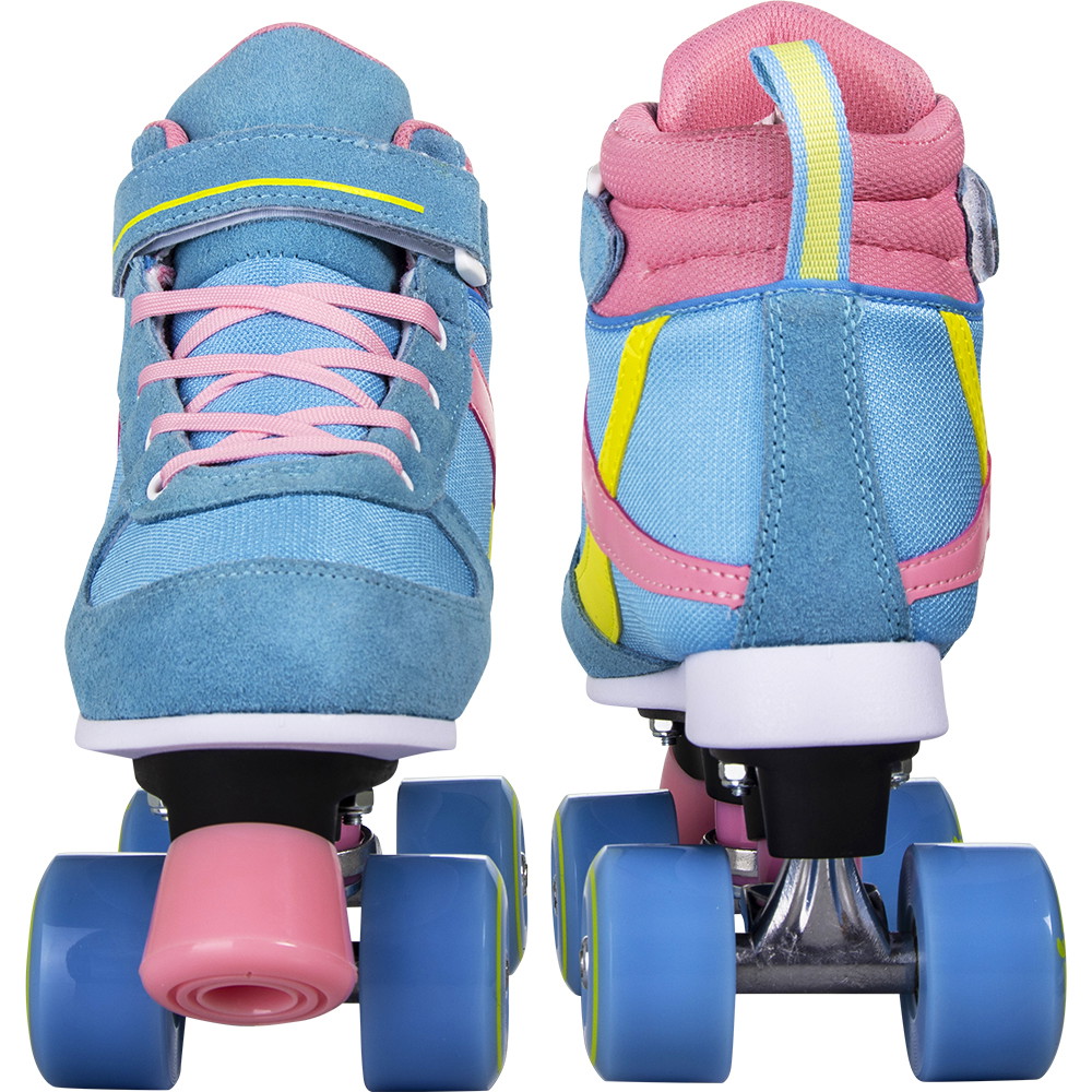 Disse quad rulleskøjter har en hjulbredde på 32 mm, hvilket giver en stabil og afbalanceret tur. Hjulenes hårdhed på 82A sikrer en glat og kontrolleret skøjteoplevelse på forskellige overflader, uanset om du skøjter indendørs eller udendørs. Hjuldiameteren varierer afhængigt af størrelsen, hvor størrelserne 33-34 har en diameter på 53 mm, størrelserne 35-37 har en diameter på 54 mm, og størrelserne 38-40 har en diameter på 57 mm. Hjulene er lavet af høj kvalitet PU-materiale, der er kendt for sin holdbarhed og pålidelige greb, hvilket sikrer optimal ydeevne under dine skøjtesessioner. Udstyret med ABEC-7 lejer tilbyder disse skøjter en glidende rulning, der forbedrer din hastighed og samlede skøjteoplevelse.