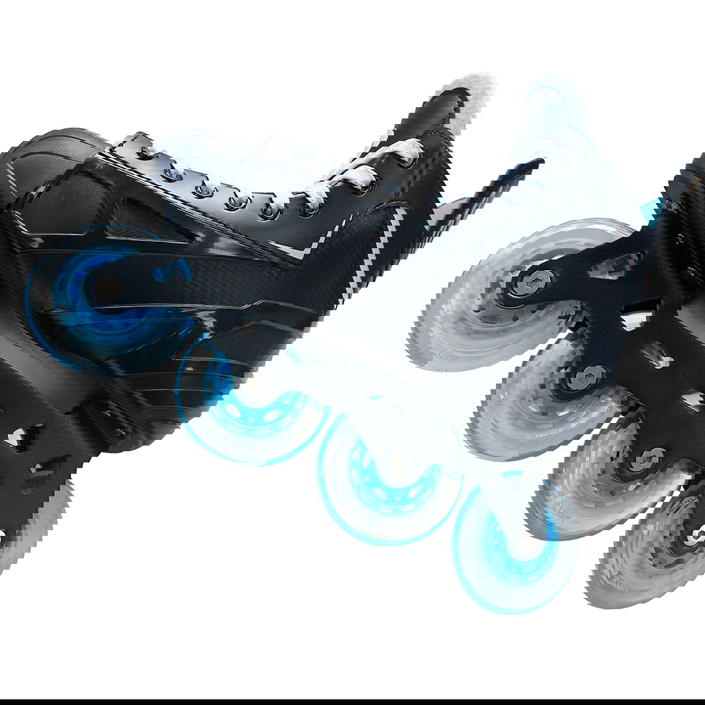 Hjulene som alle er af størrelsen 76 mm med en hårdhed på 82 A og ABEC-7 kuglejer, giver et par vildt hurtige og stabile hockey rulleskøjter, der med lethed opnå høje hastigheder. Dette styrkes yderligere med det flade setup for hjulene, som betyder at hjulene er af samme størrelse og at de alle er placeret i samme højde af hinanden. Alt for at skabe bedre stabilitet og vilde hastigheder. Derudover gør størrelsen for hjulene at der ligeledes kan manøvreres let rundt i hallen, når der skal rulles uden om modstandere og hurtigt hen for at score.