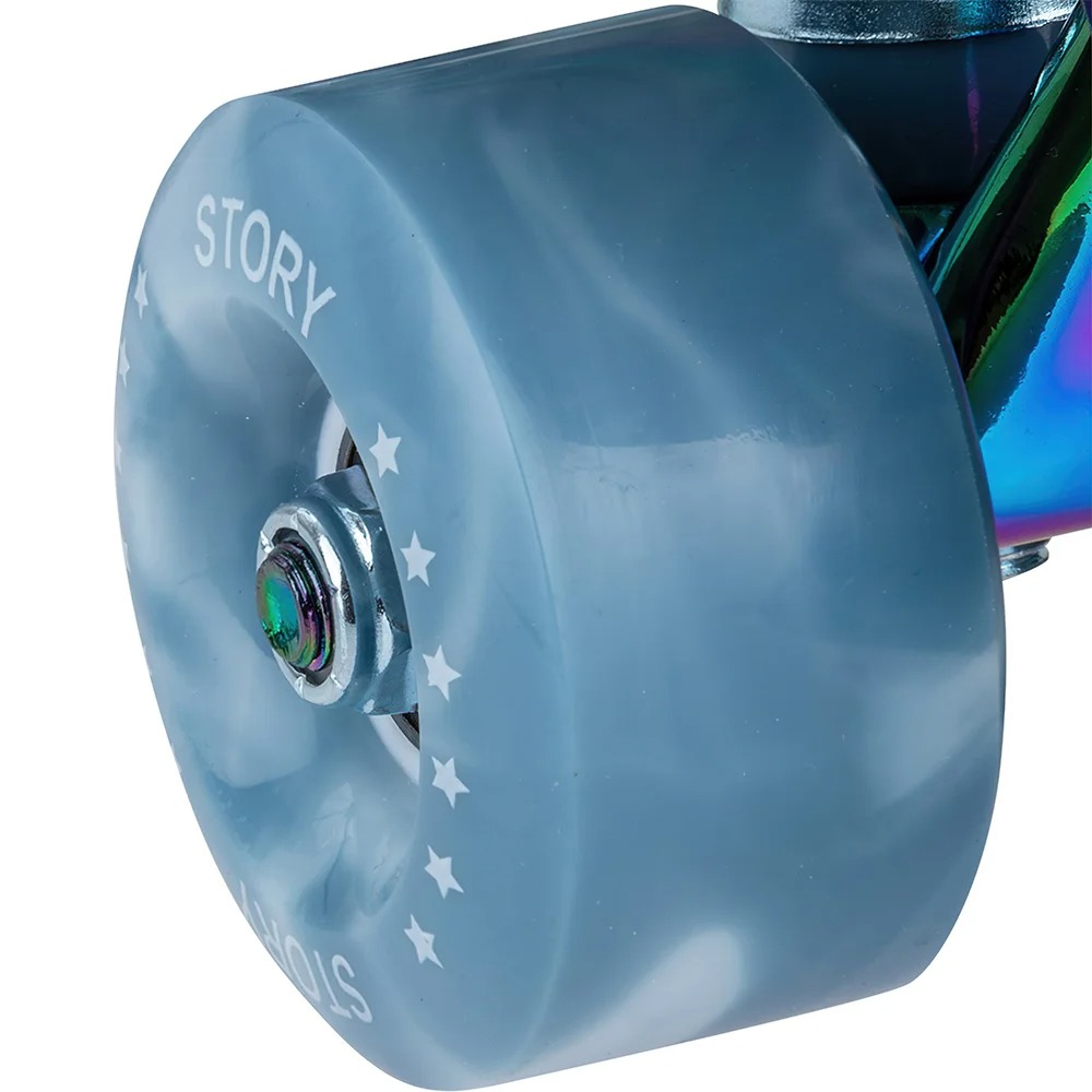 Med en hjuldiameter på 57 mm og en bredde på 32 mm giver Story Glacier-skøjterne en afbalanceret kombination af stabilitet og manøvredygtighed. Hjulenes hårdhed på 82A sikrer en jævn kørsel på forskellige overflader, både indendørs og udendørs. Udstyret med ABEC-9 lejer tilbyder disse skøjter fremragende præcision og en problemfri rulleoplevelse, der giver skøjteløbere mulighed for at opnå højere hastigheder og ubesværet glidning.