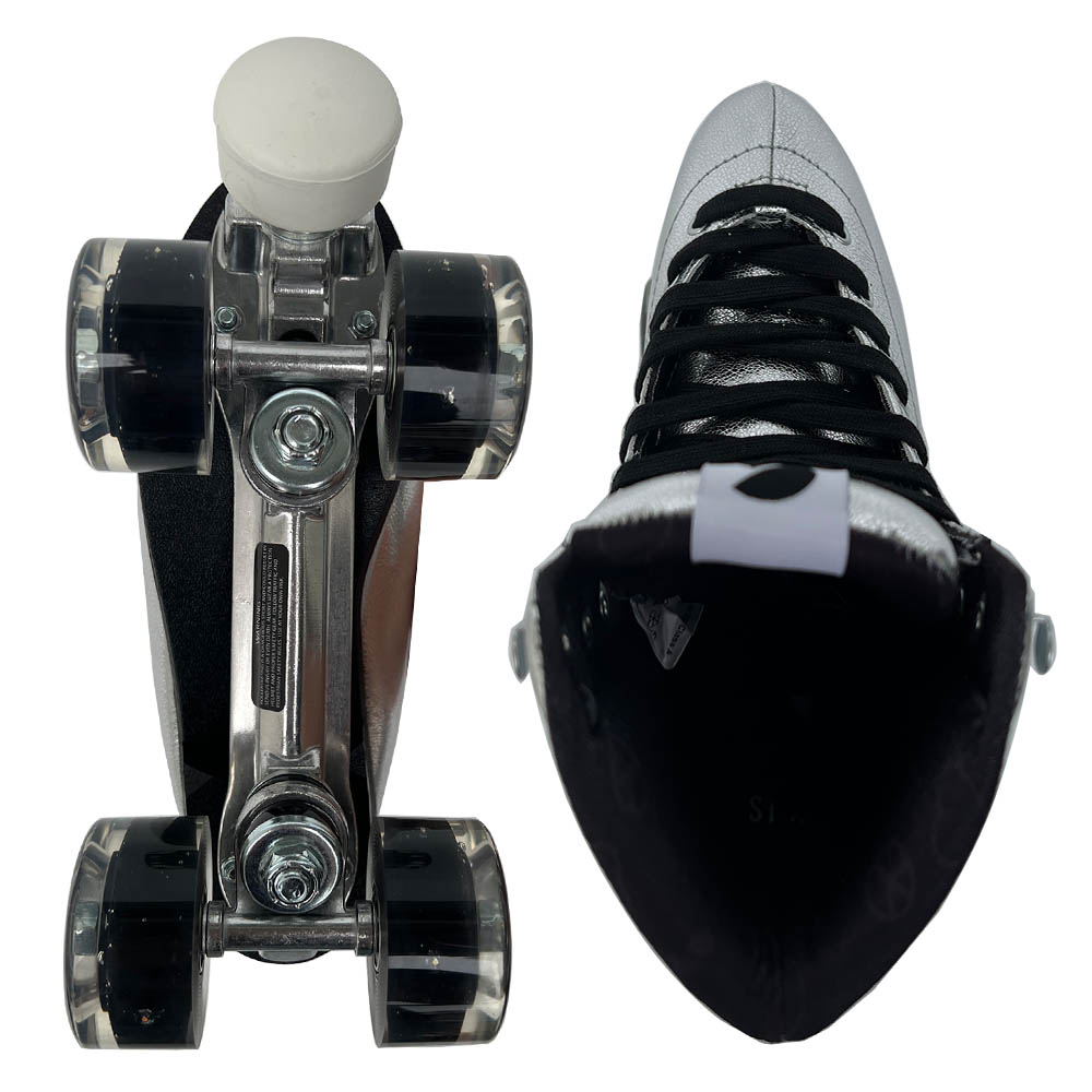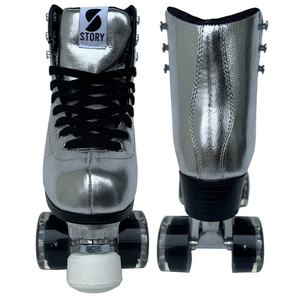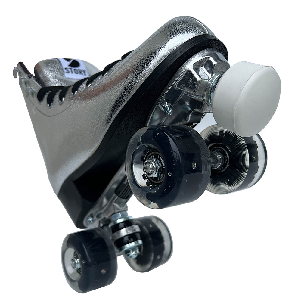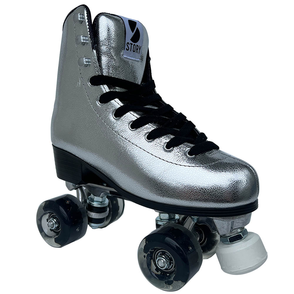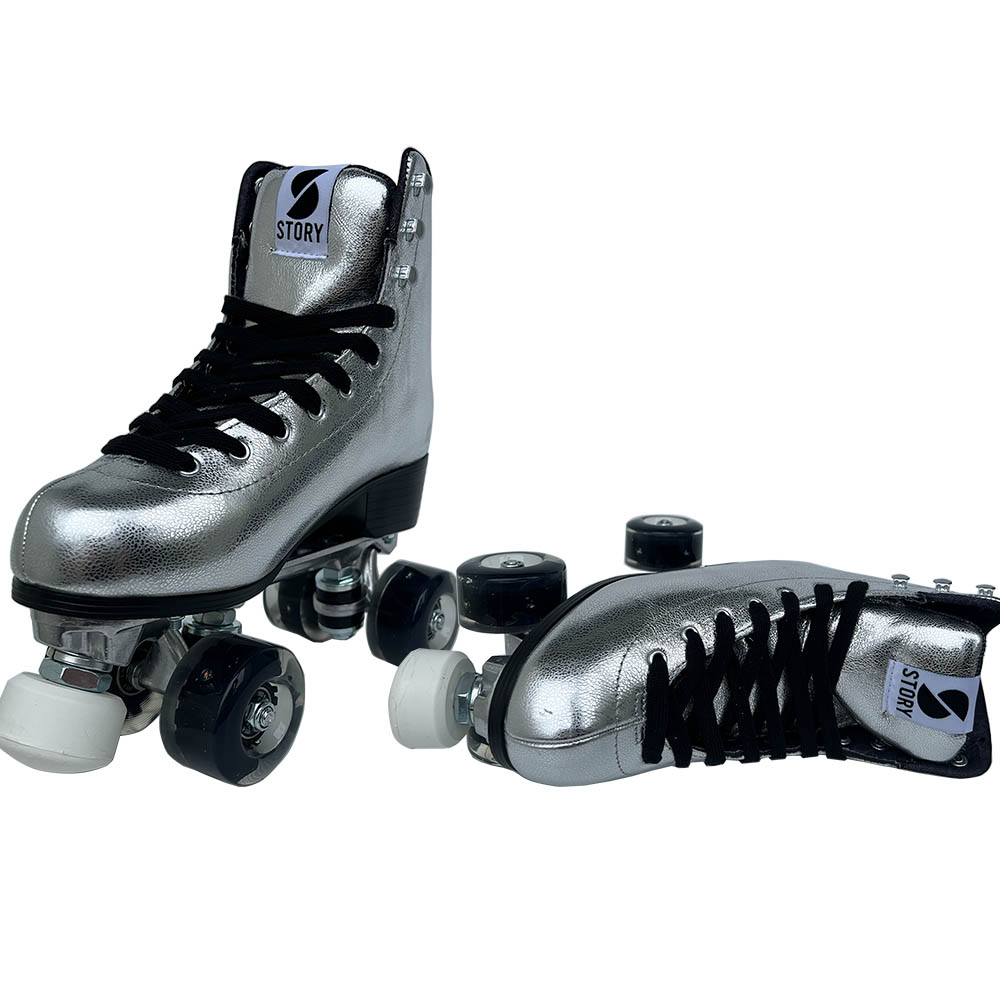 Introduktion til Story Disco Side by Side Skates, et stilfuldt og højtydende valg for quad rulleskøjteentusiaster. Disse skøjter er designet til at bringe diskotek-æraen til live, så du kan skate med groovy bevægelser og sprudlende energi.