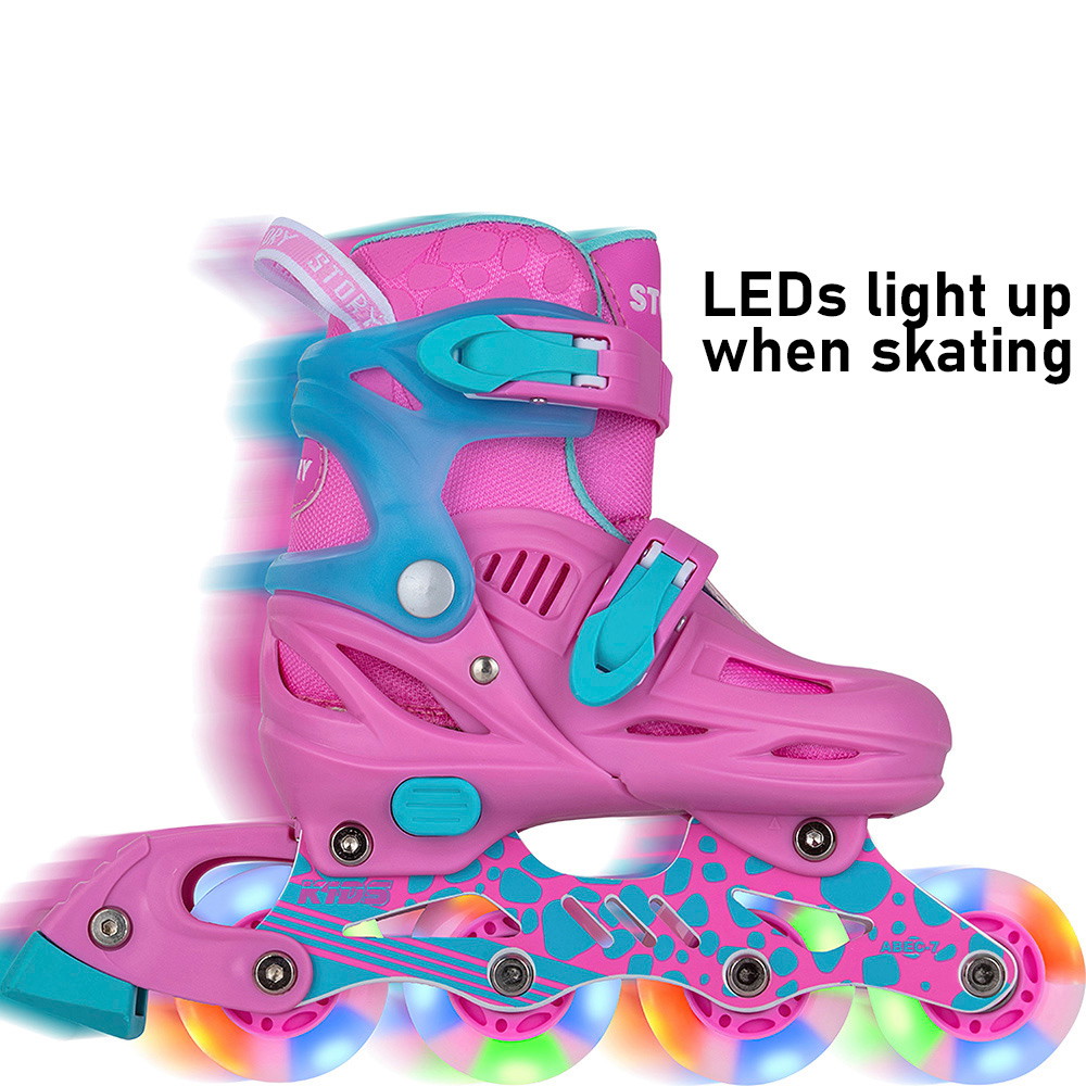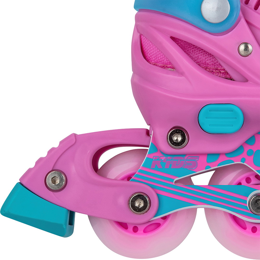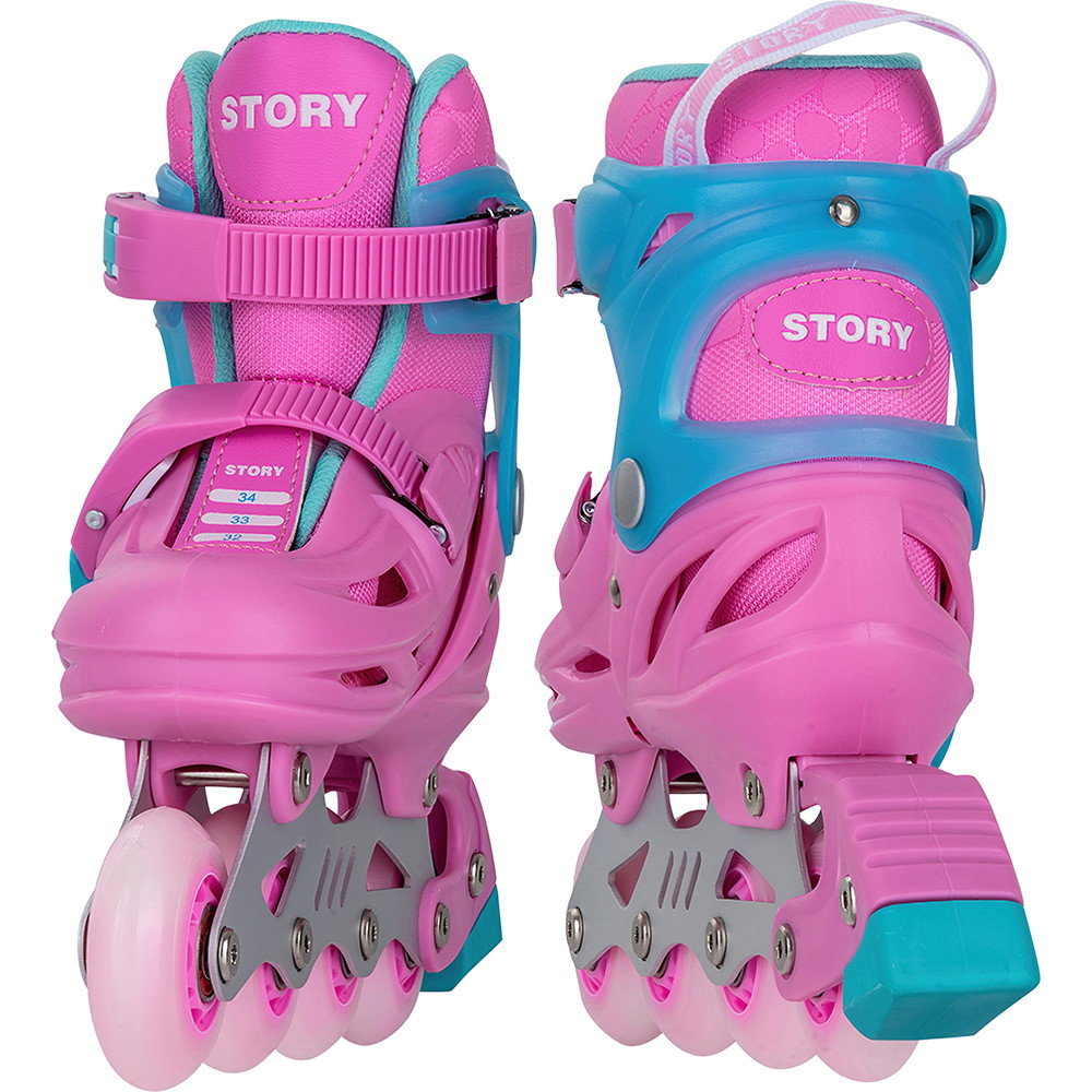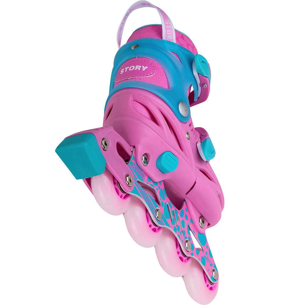 Velkommen til en verden af sjov og farver med Story Funky Inline Rulleskøjter, skabt til eventyrlystne børn, der elsker at rulle rundt med stil og lys. Disse rulleskøjter er ikke bare for sjov - de er designet til at gøre hver rulleoplevelse uforglemmelig og sikker. Story Funky Inline Rulleskøjter er udstyret med LED-lys i hjulene, der ikke kun tilføjer en sej effekt, men også øger synligheden for ekstra sikkerhed under aftenturene.