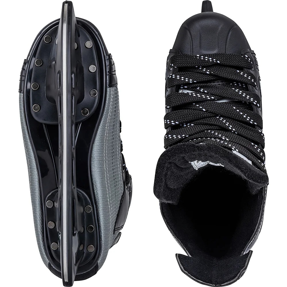 En fabriksslibet klinge gør disse ishockey skøjter klar til brug, men det anbefales at man jævnligt sliber klingen for at holde kvaliteten i orden.