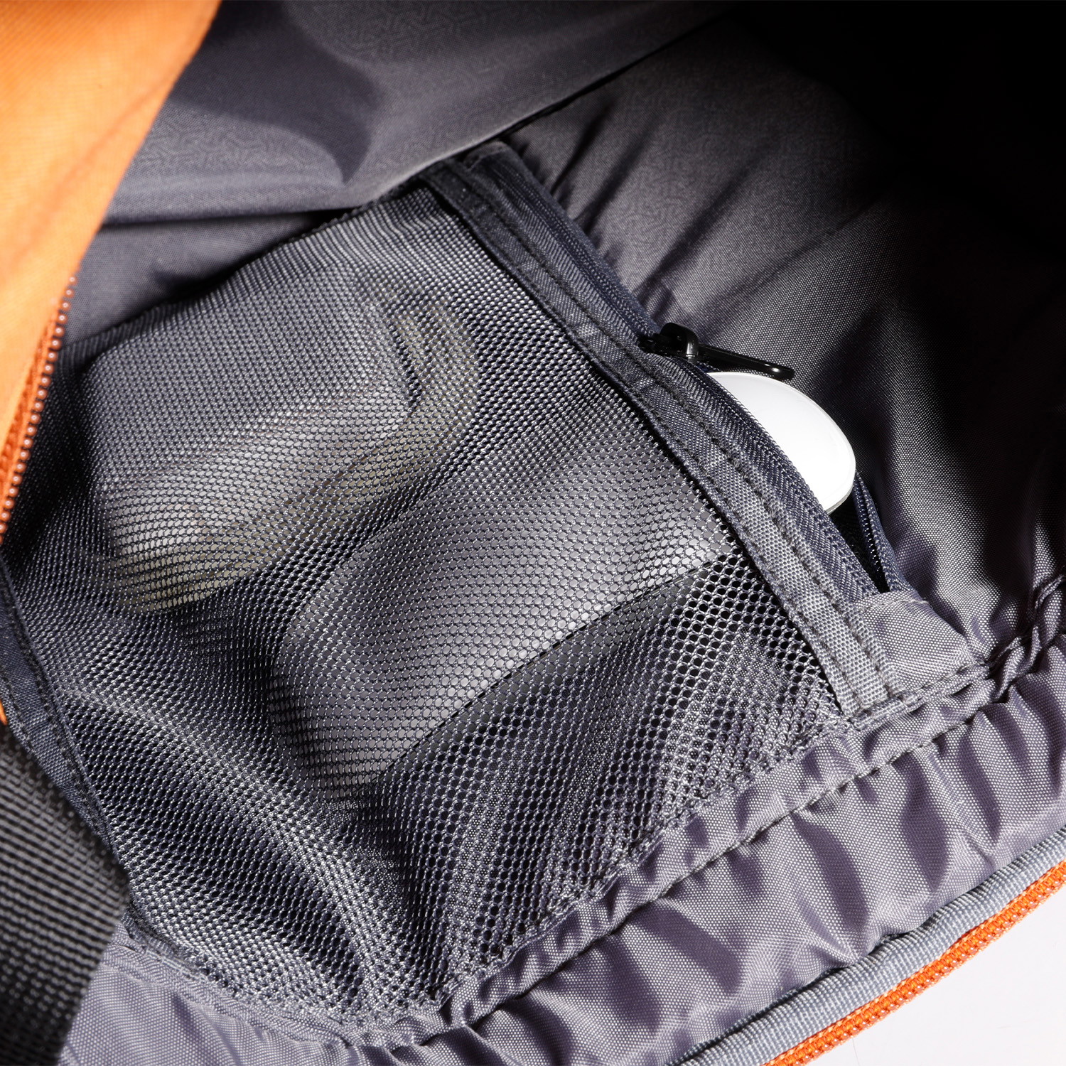 - Indvendige mesh-lommer – Holder mindre genstande som nøgler, opladere, punge og tilbehør organiseret