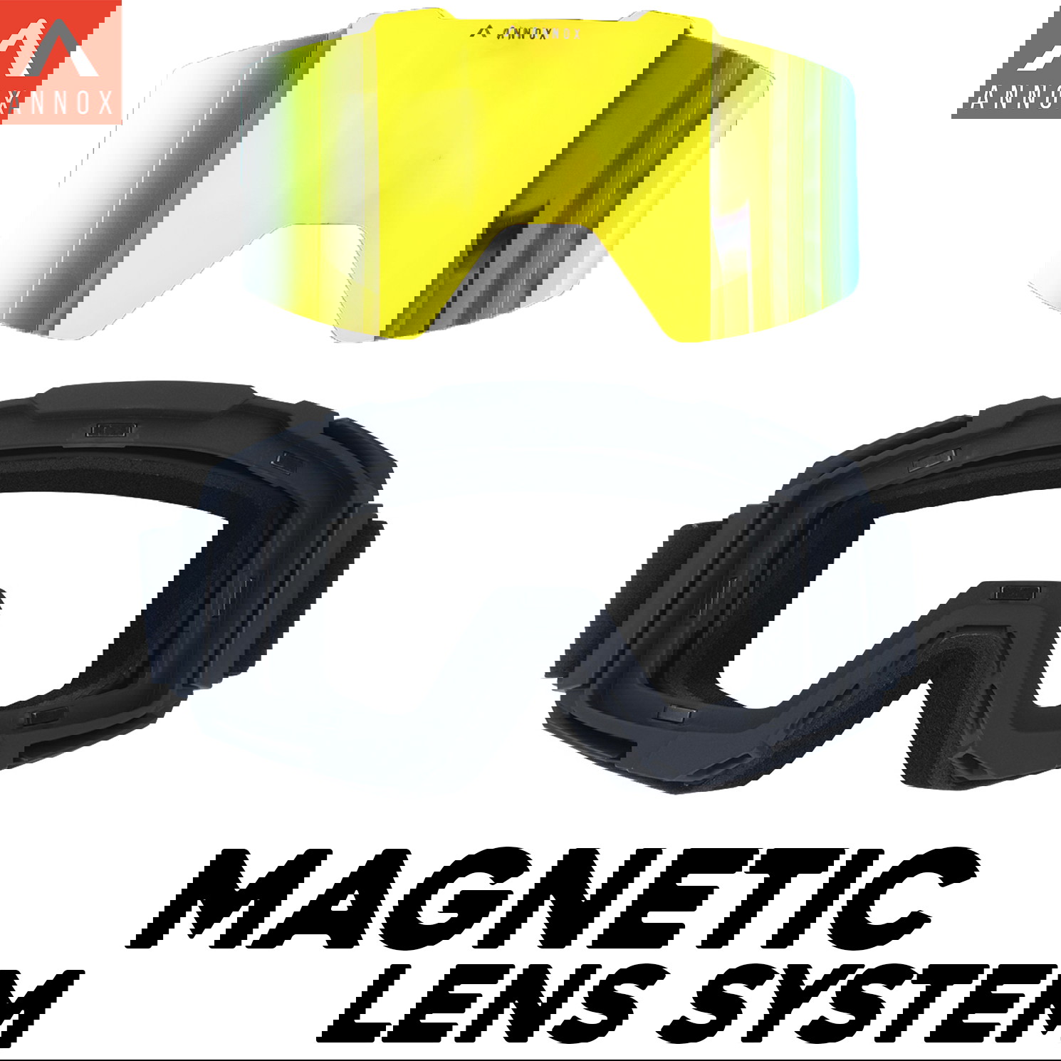 En af de mest fremtrædende funktioner ved Annox Team Goggles er det innovative magnetiske linsesystem (BEMÆRK: alle undtagen guldversionen har denne funktion). Takket være dette smarte design kan du nemt skifte linser på få sekunder – selv med handsker på! Dette giver dig mulighed for hurtigt at tilpasse dig skiftende vejr- og lysforhold og sikre optimal synlighed på alle tidspunkter. Bare klik linsen på plads med magnetkraften, og ram pisten med krystalklart syn. Se videoen på produktet for en demonstration.