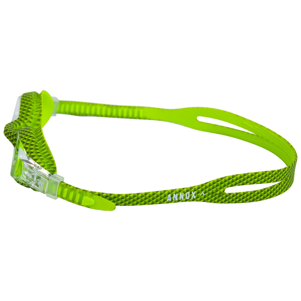 Annox Aqua Svømmebriller til børn har stærke PC-linser, som er ridsefaste og modstandsdygtige over for brud. Disse lette, men holdbare linser sikrer, at svømmebrillerne kan klare de små stød og skrammer, der kan opstå under leg og svømning. PC-linserne giver også et klart og bredt synsfelt, hvilket gør det lettere for børnene at orientere sig i vandet.