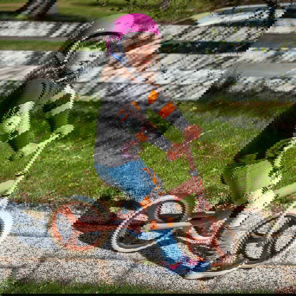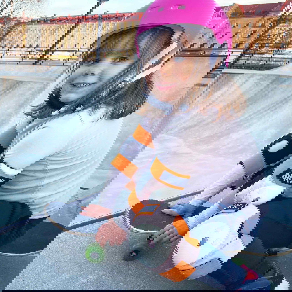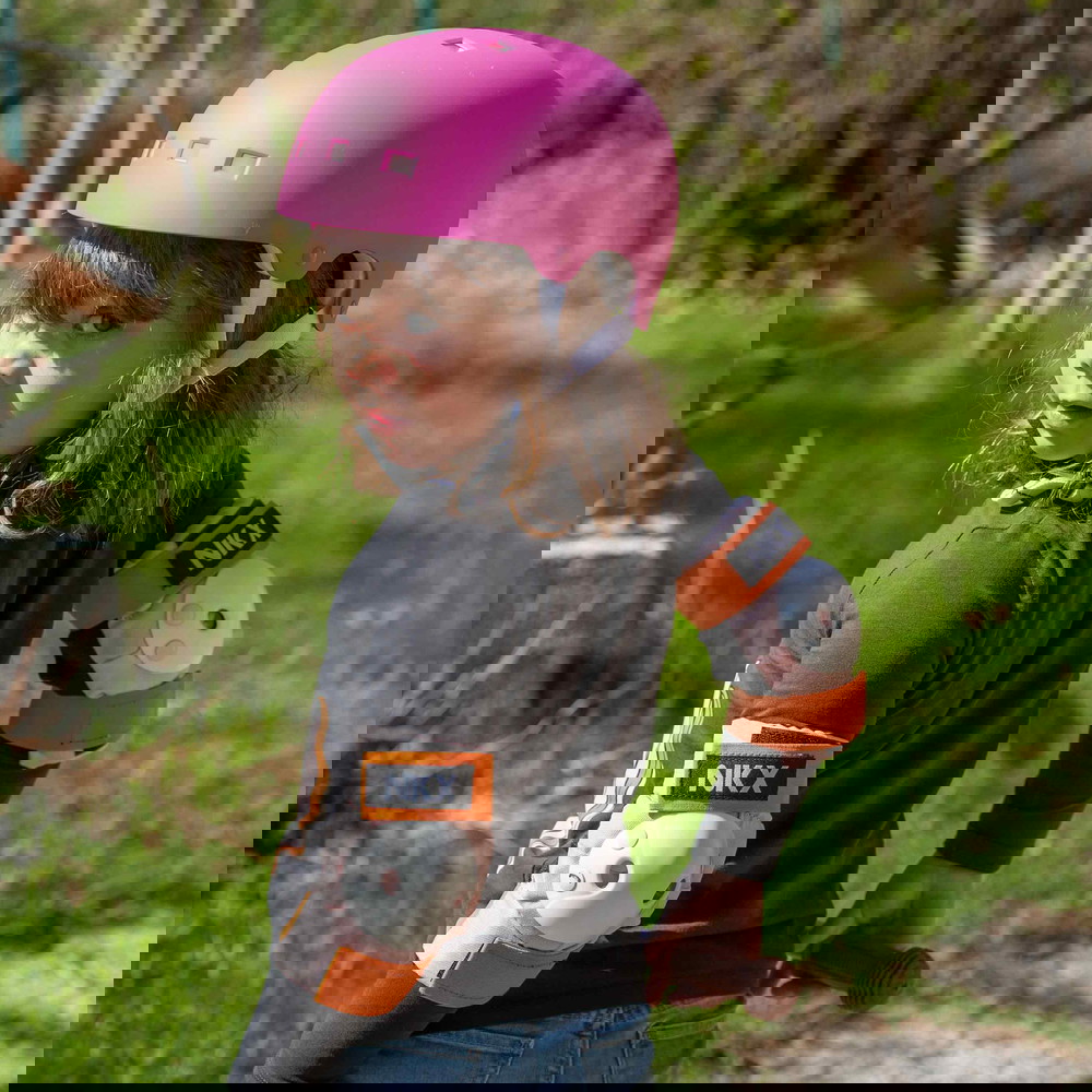 Som CE-certificeret beskyttelsesudstyr er du også sikker på at få et produkt hvor materialerne brugt i fremstillingen ikke er sundhedsfarlige. Derudover også et produkt der både er ergonomisk smart og komfortabelt nok at have på. Plus med de smarte velcrospænder kan du også justere de forskellige størrelser til bedre at passe lige præcis din specifikke størrelse. Så alt sidder som det skal og ikke glide rundt på kroppen eller medvirker til ubehag, når du fræser afsted i gaderne på dit trick løbehjul, din mini-cruiser eller dine rulleskøjter.