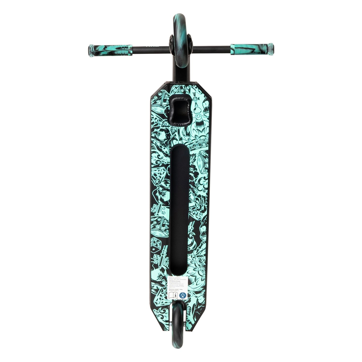 Med en kraftig T-bar af forkromet stål, får du et trick løbehjul med masser af hardcore street følelse og en suveræn holdning for dig som rider. I samspil med det lette aluminiums deck i et stærkt one-piece design med ekstra udskæringer under decket og for N-headtuben, opnås der et løbehjul til tricks af høj ydeevne og holdbarhed.