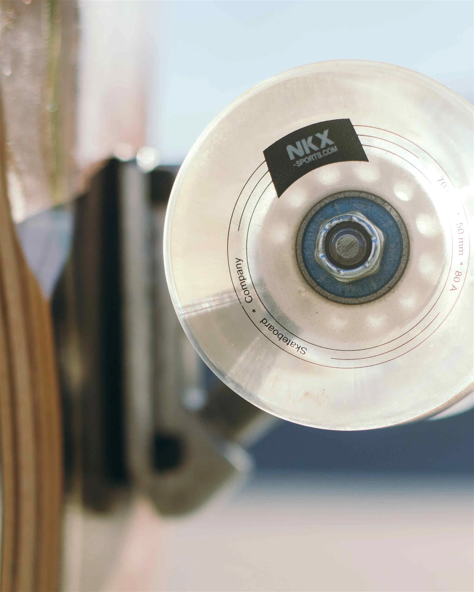 Sammen med deckformen med bløde kanter vil højkvalitetskomponenterne i NXK Geometric boards garantere stor kontrol og holdbarhed. Først og fremmest er 7-lags canadiske ahorndecket solidt og fleksibelt på samme tid og decket med et lag valnød på toppen og i bunden af brættet. De klassiske NKX Aluminium trucks garanterer dig stor kontrol, og de 50 mm squared edge hjul er bløde, men alligevel holdbare og kommer med højkvalitets ABEC-9 lejer. Takket være den gode hjuldæmpning, også øget af riser pads, vil du kunne køre på alle typer asfalt.