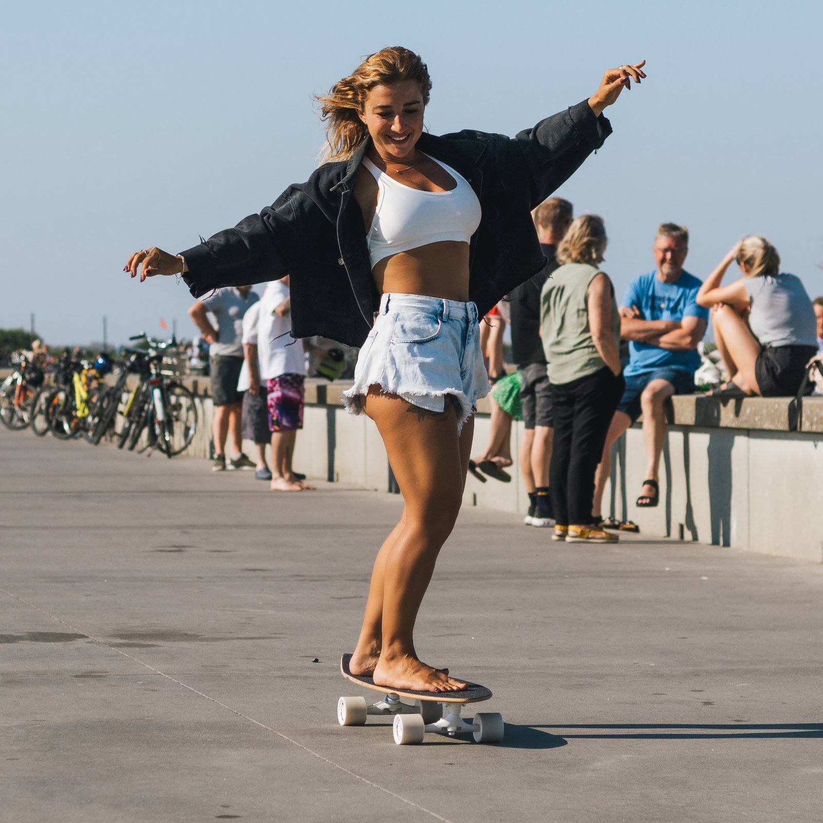 Dit longboards bredde afhænger af din fodstørrelse. Man skal have plads på longboardet til ens fødder. Det vil sige at har du store fødder skal du have et breddere longboard. Hvis man gerne vil udøve tricks og manøvre på sit longboard, så er breddere longboards typisk bedre egnet.Akselafstand:
