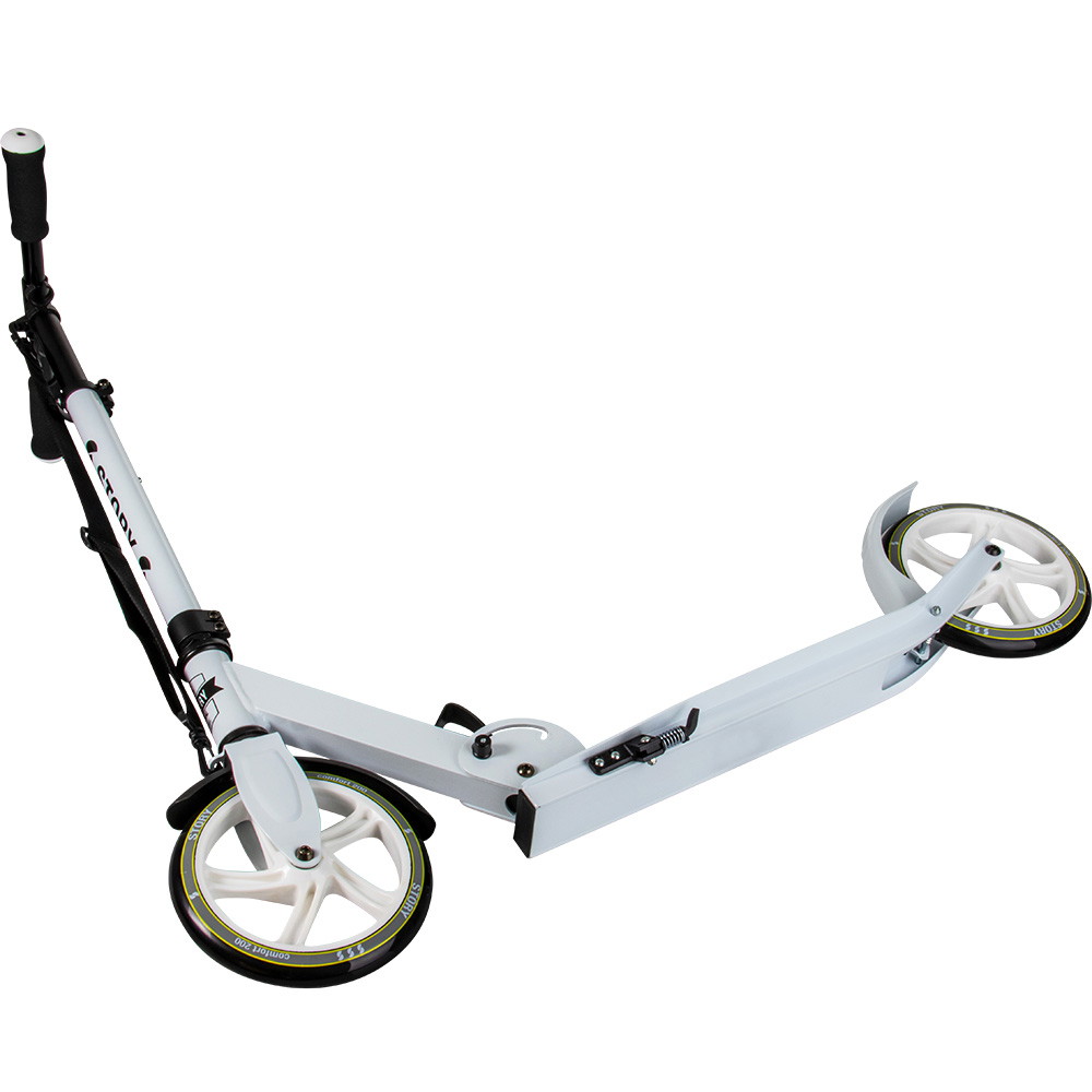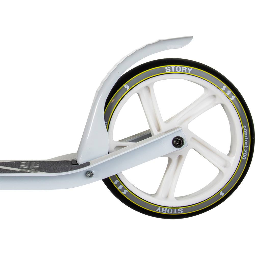 Med lette, bløde og store hjul af størrelsen 200mm, kan dette transport løbehjul til voksne og børn upåvirket køre henover de mange ujævnheder der kan forekomme på dine ture. Story har også selv udviklet hjulene og fundet frem til en løsning der giver den bedst mulige fart, komfort og køreglæde. Derudover har hjulene kuglelejer af ABEC-7, som betyder meget højt kvalitetsniveau, og vil lade dig køre med en rigtig god hastighed, samt præcist følge dine bevægelser ved sving og drejninger. Aldrig har det været så nemt og følt så vidunderligt bare at dreje til højre eller venstre.