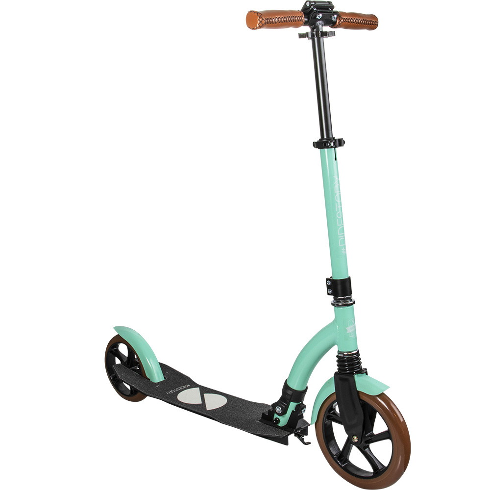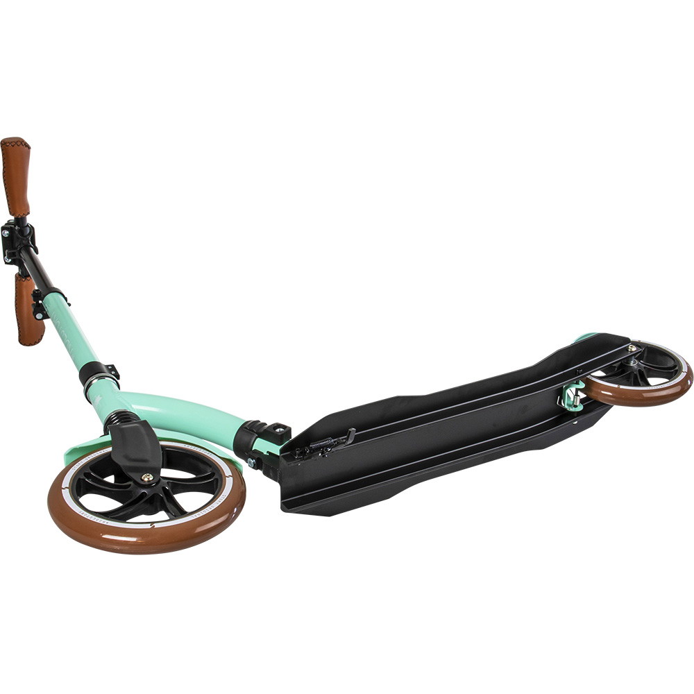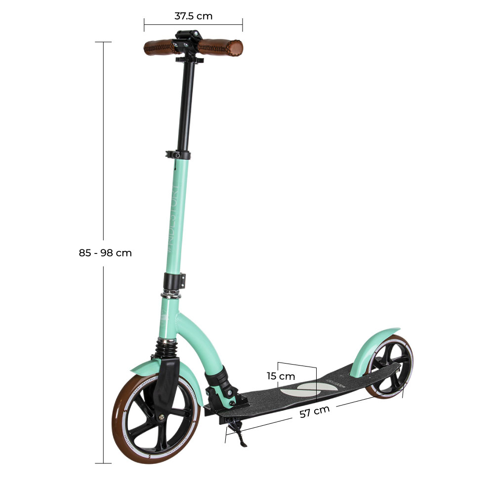Som det helt nye og absolut fedeste ved dette transportløbehjul fra Story, er håndtagene af håndsyet kvalitetslæder, hvilket giver et langt bedre og mere behageligt greb. Derudover vejer løbehjulet ikke så meget og kan let klappes sammen, så du uden besvær kan tage det med rundt i bussen, toget eller andre steder du måtte ønske at have det med dig.