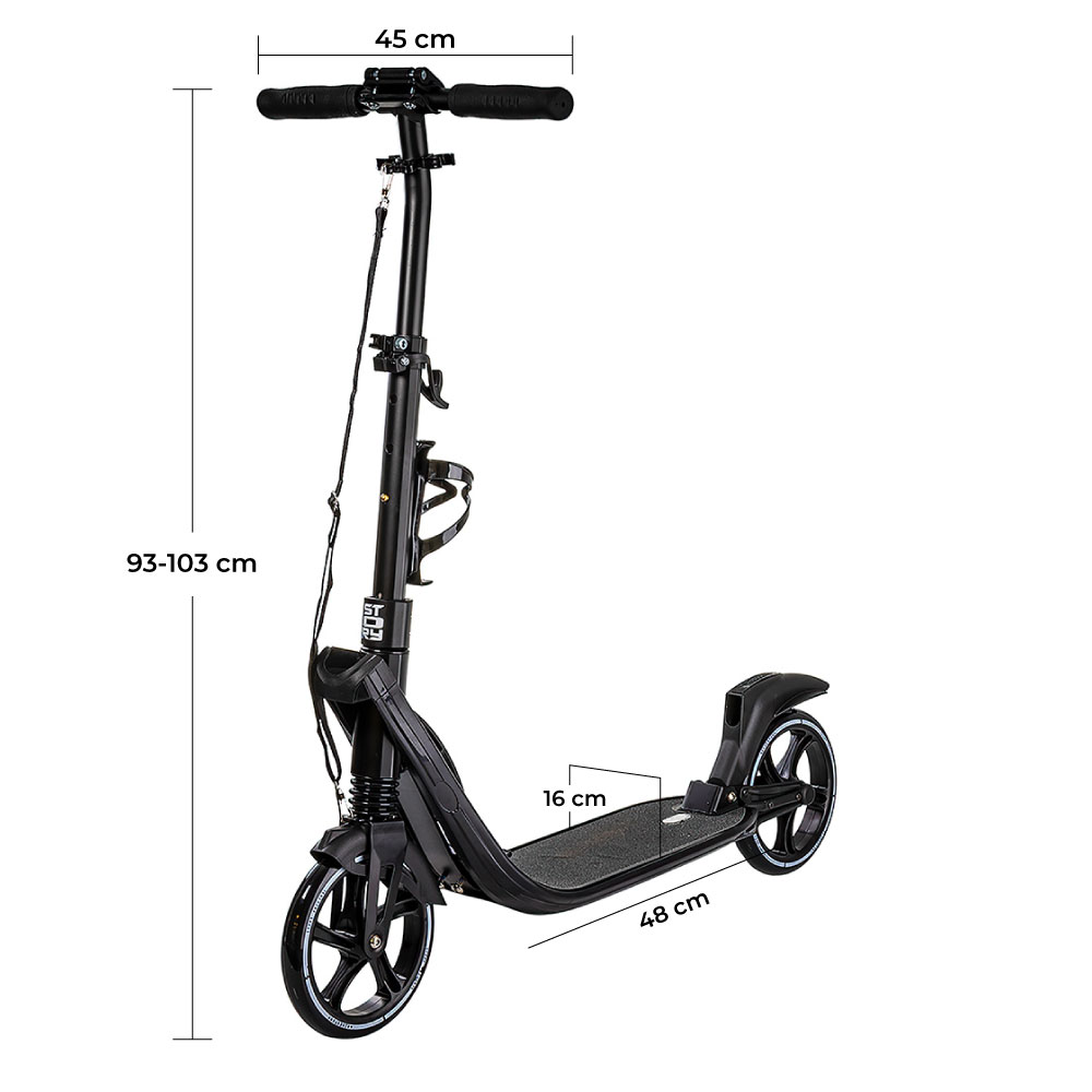 Løbehjulet kan justeres i højden, så det passer personer fra 140cm til 200cm. Med blot ét enkelt tryk med foden, kan town-løbehjulet foldes sammen og tages under armen. Derfor er det ideelt til dig som skal køre lidt vej til og fra skole/arbejde, eller til pendleren som har behov for at tage sit transportmiddel med i offentlig transport.