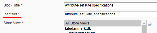 This is a block specific to this product's attribute set - all products that have the same attribute set has the same block such as this. This can be used to define each specifications that belong to the attribute set. As of the time this was created, all products belong to the attribute set "Kite" therefore this is for testing and demonstration. Note that this block is enabled for "All Store Views" so it's the same on all languages. To translate the specifications for various languages, create individual static blocks set to the appropriate Store View that correlates to the Language.
